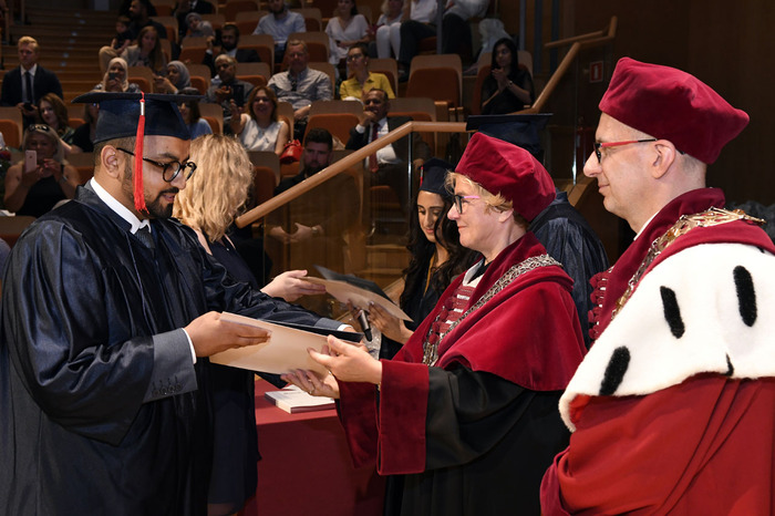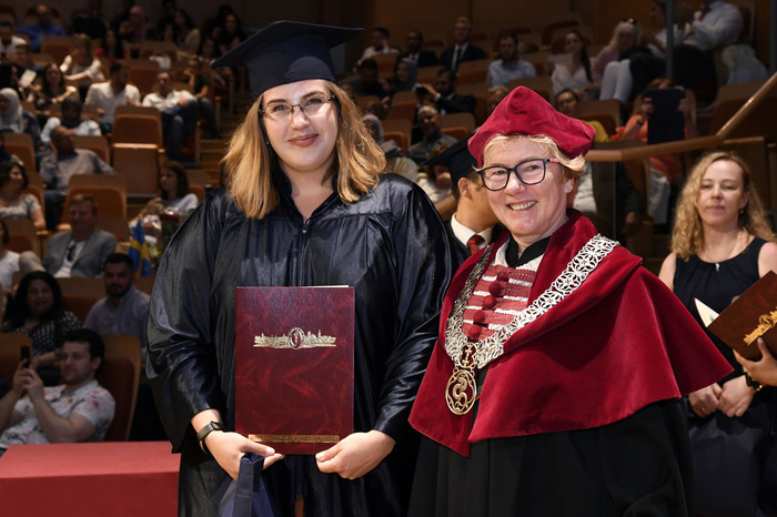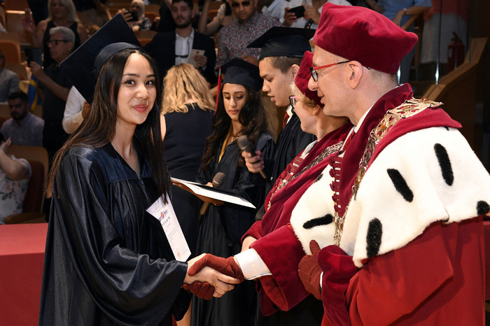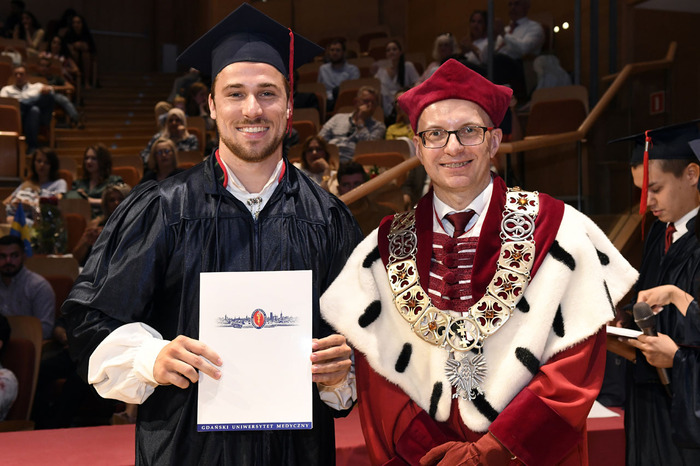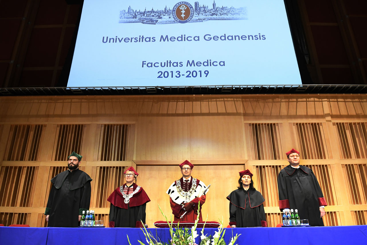 Dziewięćdziesięciu absolwentów kierunku lekarskiego anglojęzycznego rocznika 2013-2019 odebrało swoje dyplomy. Uroczystość odbyła się 26 czerwca w Polskiej Filharmonii Bałtyckiej im. Fryderyka Chopina. Przemówienia wygłosili rektor prof. Marcin Gruchała, dziekan Wydziału Lekarskiego prof. Maria Dudziak, prodziekan Wydziału Lekarskiego prof. Maria Alicja Dębska-Ślizień, dr Jacek Kaczmarek – International Alumni Relations Officer, prof. Ewa Bryl oraz dr hab. Sławomir Wójcik. Głos zabrali także absolwenci rocznika 2013-2019 – Caroline Lipski oraz Fredrik Kraft. Absolwenci po złożeniu przyrzeczenia lekarskiego odebrali dyplomy z rąk rektora Gruchały i dziekan Dudziak.