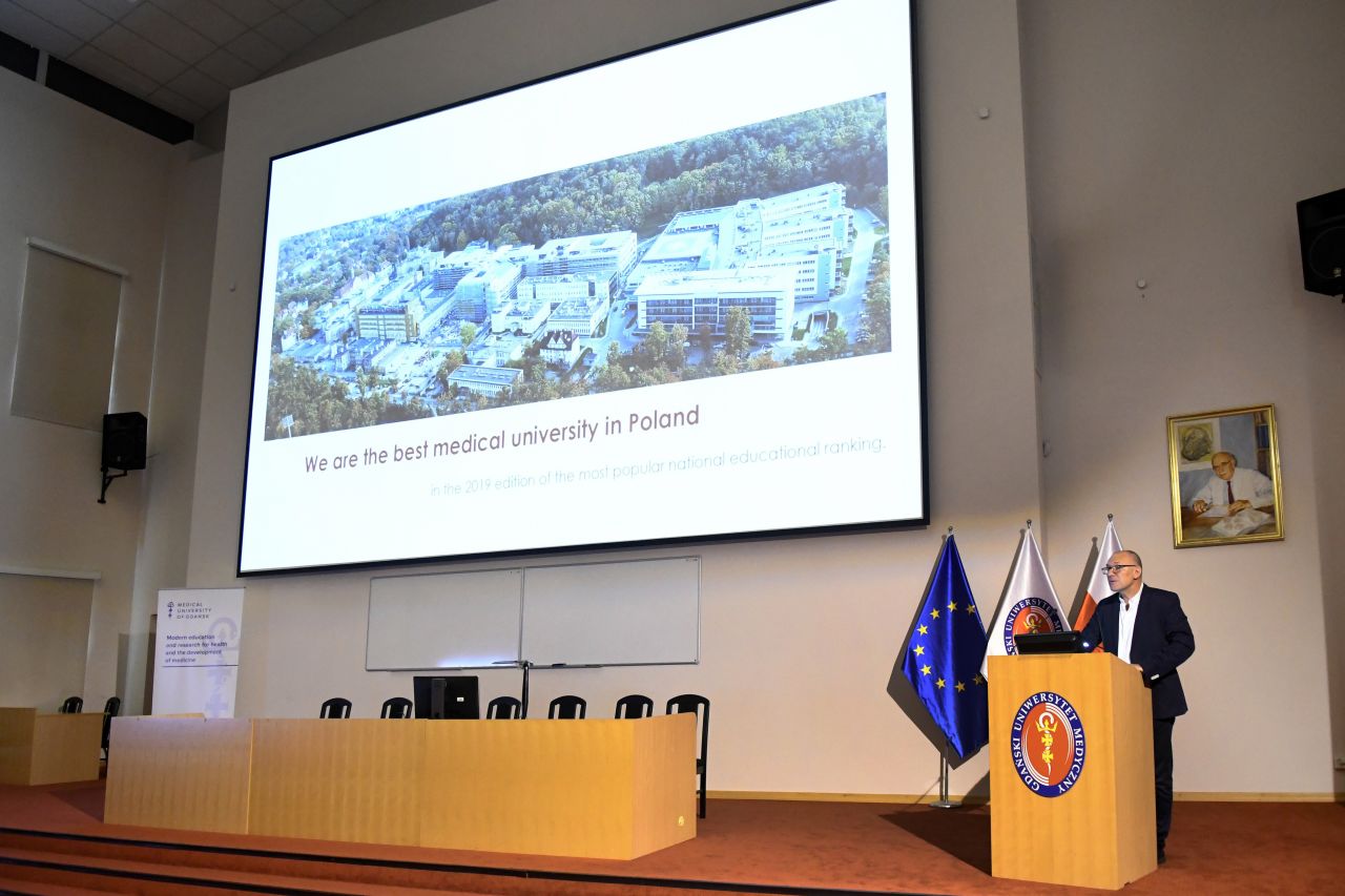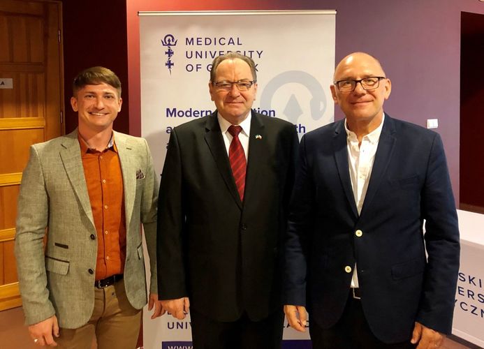 Stuosobowa delegacja z Ukrainy odwiedziła 12 sierpnia br. Gdański Uniwersytet Medyczny. Byli to przedstawiciele instytucji edukacyjnych (szkół, szkół wyższych), organizacji kulturalnych, administracji publicznej i zakładów opieki zdrowotnej w ramach organizacji All-Ukrainian Youth Public Organization “Heart to Heart”. Goście zapoznali się z historią Uczelni oraz jej ofertą edukacyjną. Przywitał ich prof. Jacek Bigda, prorektor ds. rozwoju i organizacji kształcenia. Adam Tuszyński z Sekcji Promocji opowiedział o Uczelni, dr Marek Bukowski o jej historii a dr hab. Tomasz Stefaniak, dyrektor ds. lecznictwa, lekarz naczelny o działalności Uniwersyteckiego Centrum Klinicznego. Na zakończenie goście mieli okazję zwiedzić Muzeum Gdańskiego Uniwersytetu Medycznego. Spotkanie zaszczycił obecnością Konsul Ukrainy Witalij Maksimienko. Przyjazd gości koordynował Dział ds. Umiędzynarodowienia Uczelni.