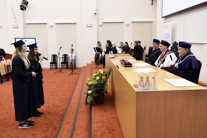 Immatrykulację prowadziły dr Anna Stefanowicz-Bielska – opiekun II roku studiów Nursing English Division oraz mgr Katarzyna Milska, opiekun IV roku kierunku psychologia zdrowia.