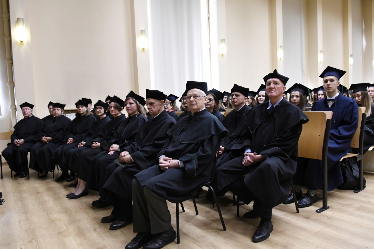 W uroczystości, którą prowadził dziekan WF prof. dr hab. Michał Markuszewski uczestniczyli: rektor prof. Marcin Gruchała, prorektor ds. nauki prof. Tomasz Bączek, prodziekani WF – prof. dr hab. Maciej Jankowski, dr hab. Bartosz Wielgomas i dr hab. Anita Kornicka oraz zaproszeni goście, a wśród nich między innymi przedstawiciele Rady Pracodawców oraz członkowie Rady Wydziału Farmaceutycznego i nauczyciele akademiccy.