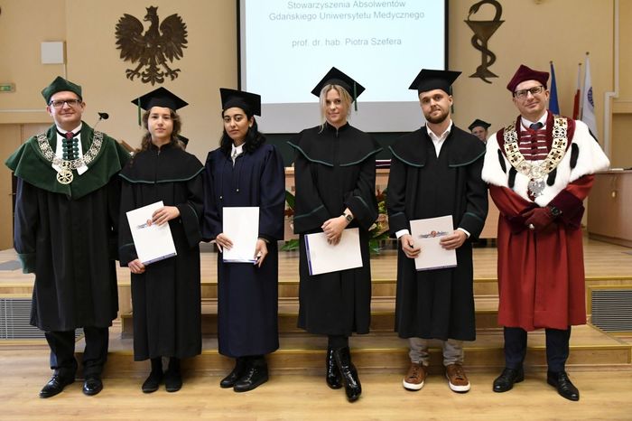 W uroczystości udział wzięli: prof. Marcin Gruchała – rektor GUMed, prof. Andrzej Basiński – dziekan WNoZ z IMMiT, prof. Przemysław Rutkowski – prodziekan WNoZ ds. studenckich i spraw socjalnych, dr hab. Sylwia Małgorzewicz, prof. nadzw. – prodziekan WNoZ ds. jakości kształcenia i praktyk studenckich, dr hab. Aleksandra Gaworska-Krzemińska – prodziekan WNoZ ds. promocji i rozwoju oraz dr hab. Bartosz Wielgomas – prodziekan Wydziału Farmaceutycznego.