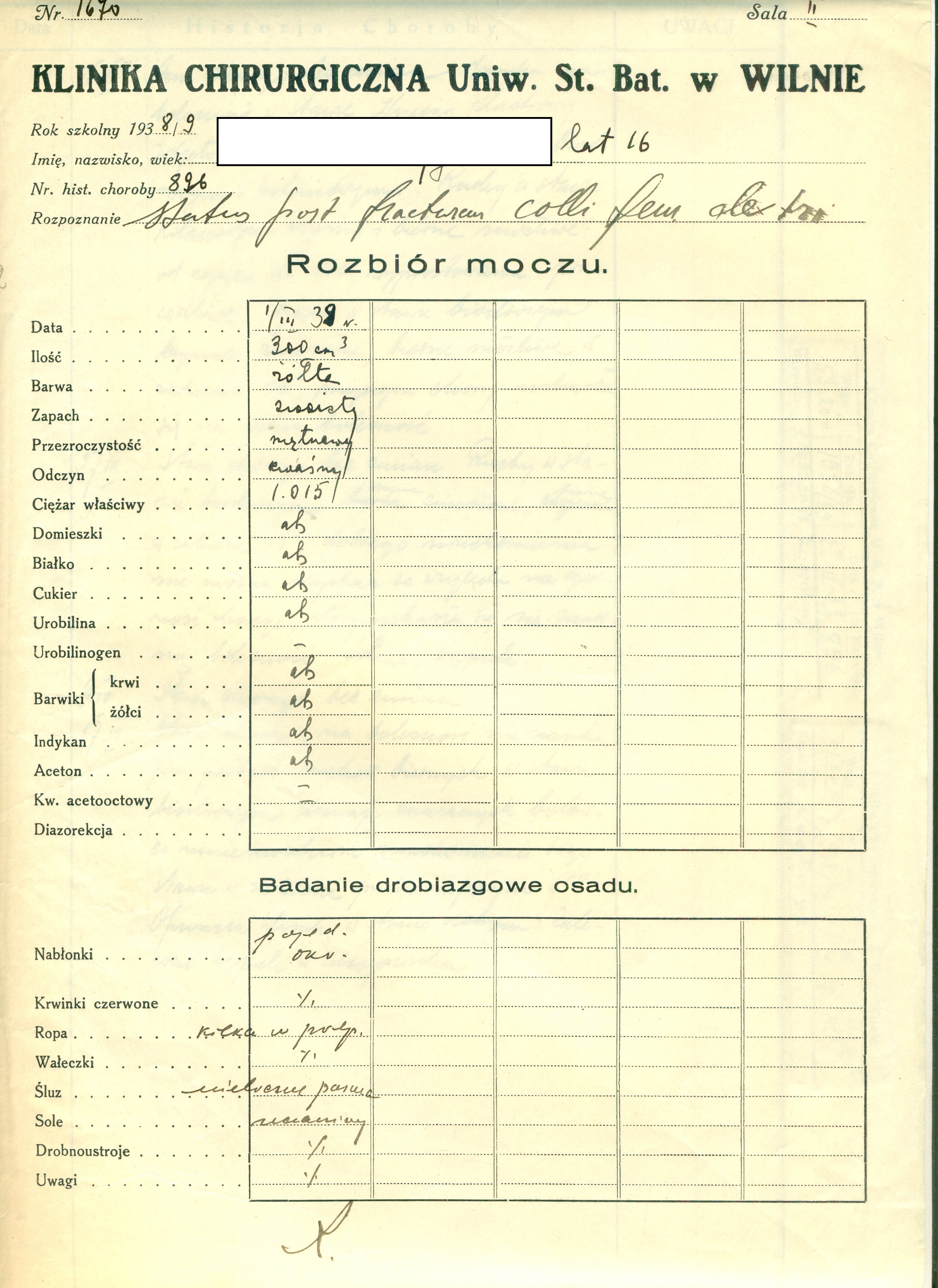 Do tej listy pamiątek wieleńskich dodajemy dziś trzy kolejne. Stanowią fragmenty dokumentacji medycznej, jaka z Wilna przywędrowała do Gdańska. Są one nie tylko sentymentalną pamiątką. Wraz z pozostałymi podobnymi obiektami stanowią cenne źródło informacji o opiece zdrowotnej w latach 30. ubiegłego wieku. Zmiany, które w medycynie dotyczą nie tylko udoskonalenia metod diagnostycznych i leczniczych, to również głębokie przemiany tzw. kultury medycznej. Obejmują one np. język jakim posługują się pracownicy ochrony zdrowia. Na muzealnej półce znajdujemy trzy dokumenty pochodzące z Kliniki Chirurgicznej (a nie Kliniki Chirurgii, jak mówimy dziś) Uniwersytetu Stefana Batorego. Znalazły się w Muzeum GUMed dzięki prof. Zdzisławowi Wajdzie, prof. Tomaszowi Mazurkowi i dr. Andrzejowi Stankowi.