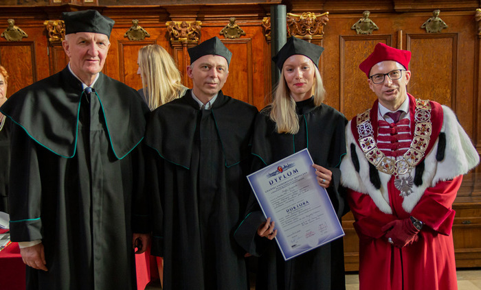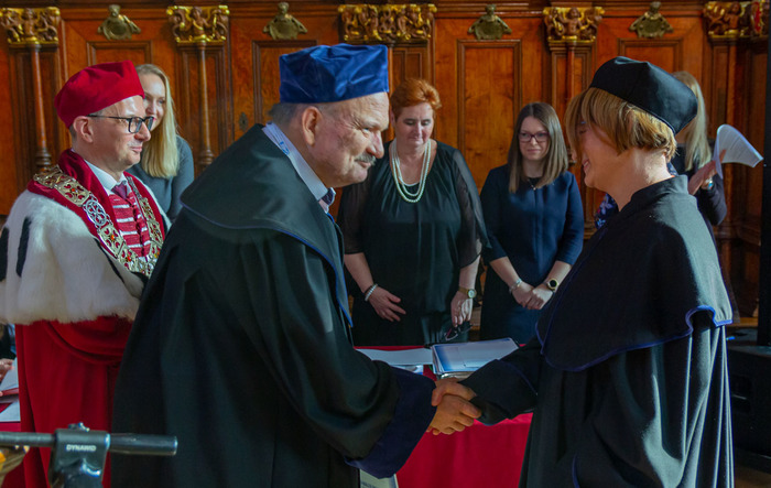 Po przemówieniu Rektora odbyło się uroczyste wręczenie dyplomów doktora habilitowanego. Dziekan Wydziału Lekarskiego wręczyła dyplomy doktora habilitowanego nauk medycznych: dr hab. Annie Kowalczyk, dr. hab. Bogusławowi Mikaszewskiemu, dr hab. Annie Stanisławskiej-Sachadyn, dr. hab. Dominikowi Stodulskiemu i dr. hab. Marcinowi Wirtweinowi. Prodziekan Wydziału Nauk o Zdrowiu z IMMiT wręczył dyplom doktora habilitowanego nauk o zdrowiu dr hab. Joannie Renke, natomiast Przewodniczący Rady Nauk Farmaceutycznych wręczył dyplom doktora habilitowanego nauk farmaceutycznych dr hab. Beacie Żołnowskiej.
