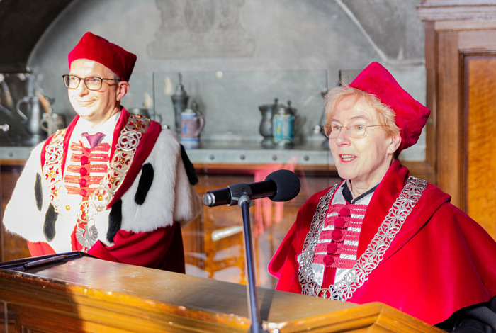 Uroczystość rozpoczęła się powitaniem zespołu promocyjnego, promotorów, habilitantów, doktorantów oraz gości. Zgodnie z XVI-wieczną tradycją Dworu Artusa na cześć wybitnych gości odpalono felukę.
