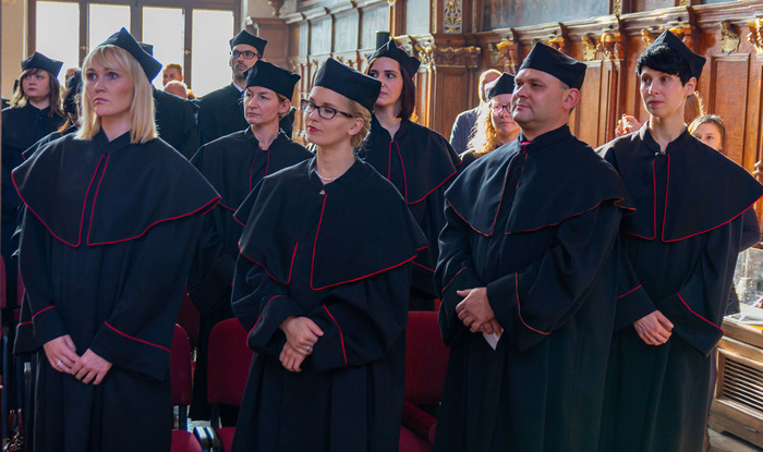W uroczystości, która odbyła się 25 października br. uczestniczyli: rektor prof. Marcin Gruchała, prorektor ds. klinicznych dr hab. Edyta Szurowska, prof. GUMed, dziekan Wydziału Lekarskiego prof. Maria Dudziak, prodziekan Wydziału Nauk o Zdrowiu z IMMiT oraz przewodniczący Rady Nauk o Zdrowiu prof. Piotr Lass, przewodniczący Rady Nauk Farmaceutycznych prof. Wiesław Sawicki oraz 17 promotorów Wydziału Lekarskiego, 11 promotorów Wydziału Nauk o Zdrowiu z IMMiT i 6 promotorów Wydziału Farmaceutycznego.