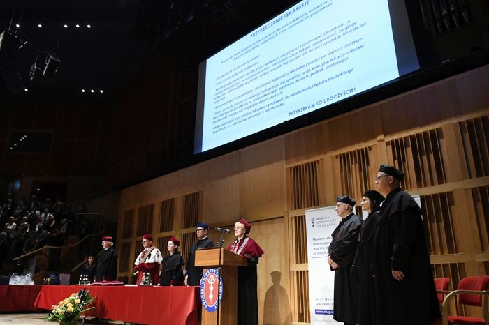 Przemówienia wygłosili m.in. rektor Gruchała, dziekan Dudziak, dr Roman Budziński – wiceprezes Okręgowej Rady Lekarskiej w Gdańsku, dr Henryk Zawadzki, opiekun studentów I roku kierunku lekarskiego i lekarsko-dentystycznego, dr Anna Starzyńska, prof. GUMed – prezes Stowarzyszenia Absolwentów, Kaja Barańska – przedstawiciel studentów kierunku lekarskiego oraz lek. Sandra Nowacka – absolwentka kierunku lekarskiego.