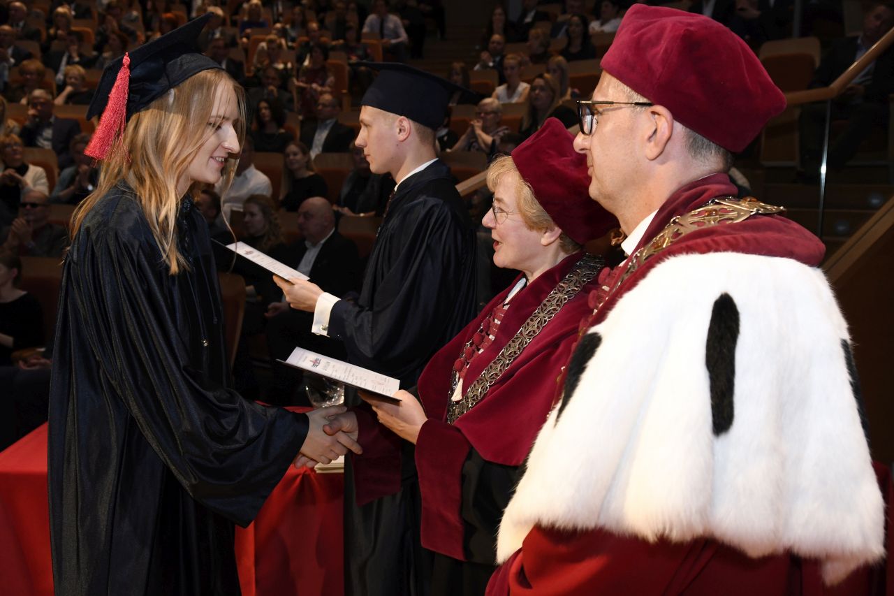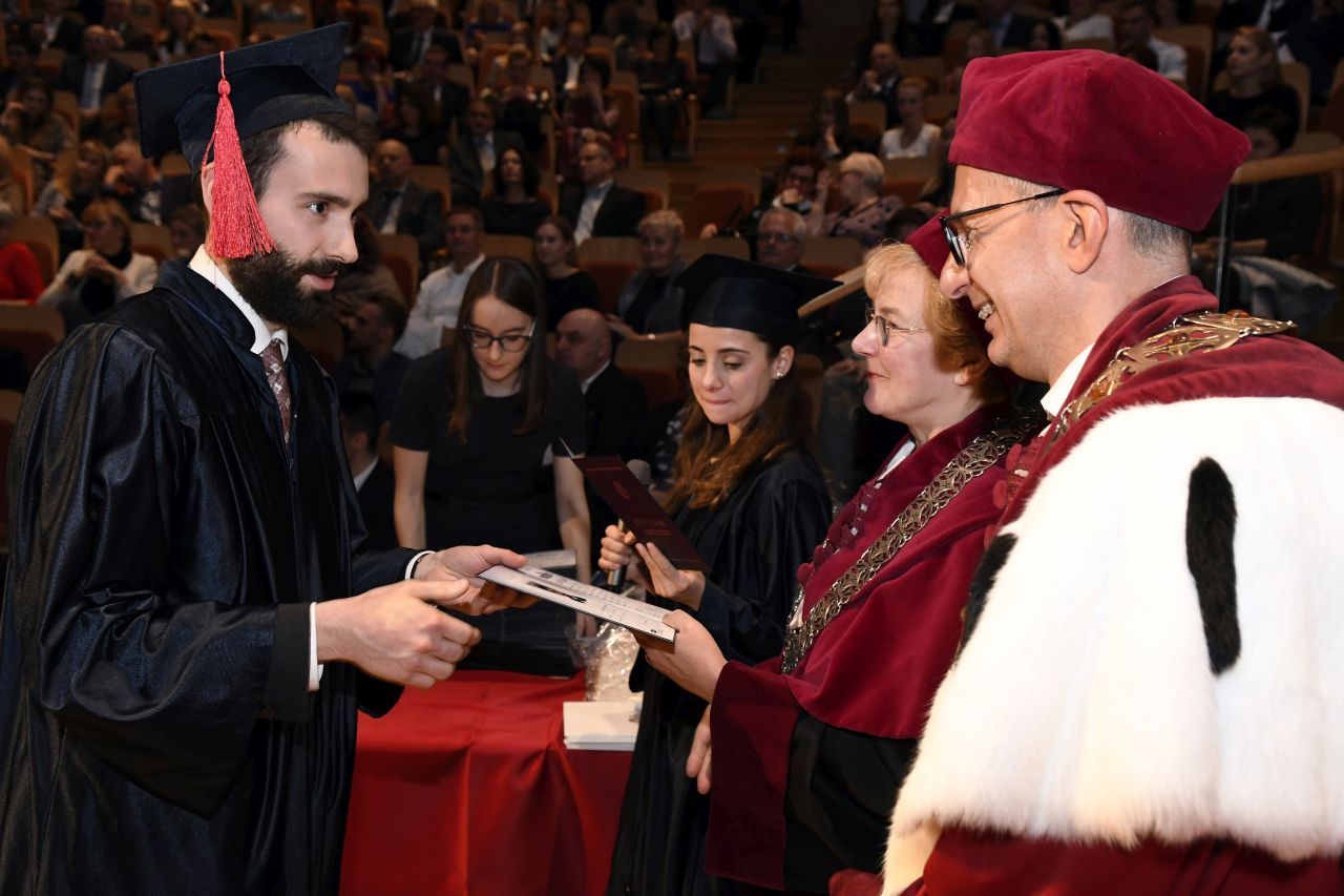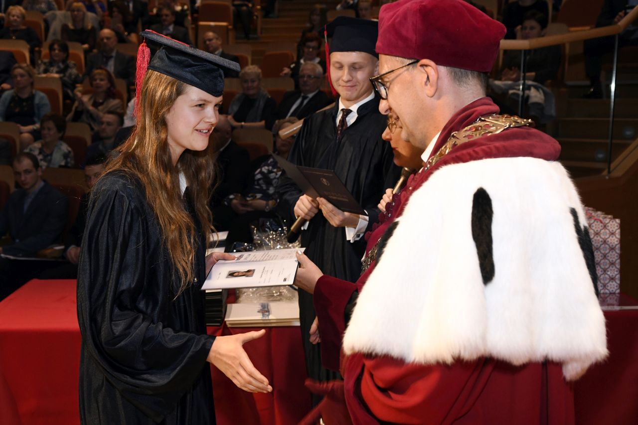 Uroczystości przewodniczył rektor Uczelni – prof. Marcin Gruchała, który w swoim przemówieniu pogratulował wszystkim dyplomantom oraz życzył dalszych sukcesów. Absolwenci po złożeniu przyrzeczenia lekarskiego odebrali dyplomy z rąk prof. Marcina Gruchały oraz dziekan Wydziału Lekarskiego prof. Marii Dudziak.