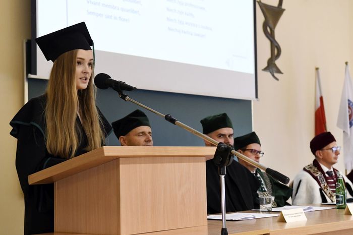 Okolicznościowe przemówienia wygłosili również: prof. Michał Markuszewski, prof. Maciej Jankowski, dr hab. Bartosz Wielgomas, Tomasz Moys, wiceprezes Zarządu Zakładów Farmaceutycznych Polpharma, mgr farm. Alicja Utracka z Krajowej Izby Diagnostów Laboratoryjnych, prof. Andrzej Szutowicz, konsultant wojewódzki ds. diagnostyki laboratoryjnej, prof. Piotr Szefer ze Stowarzyszenia Absolwentów, mgr Magdalena Piotrowska, przedstawicielka absolwentów kierunku analityka medyczna, mgr Karolina Piastowska, przedstawicielka absolwentów kierunku przemysł farmaceutyczny i kosmetyczny oraz Gabriela Harasim, studentka V roku analityki medycznej, która pożegnała w imieniu wszystkich studentów tegorocznych absolwentów.