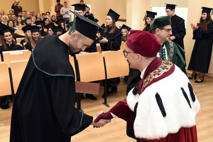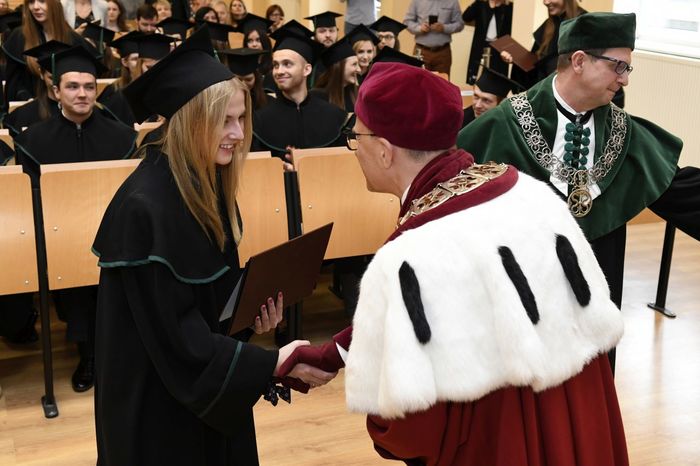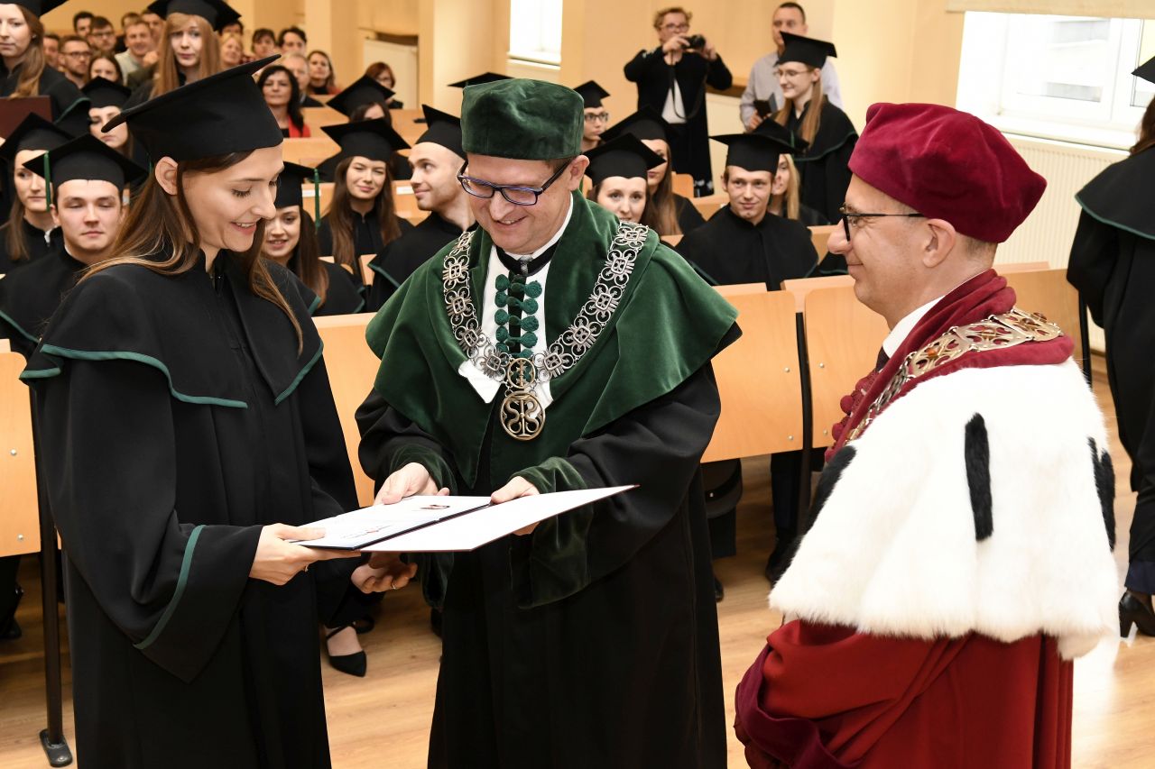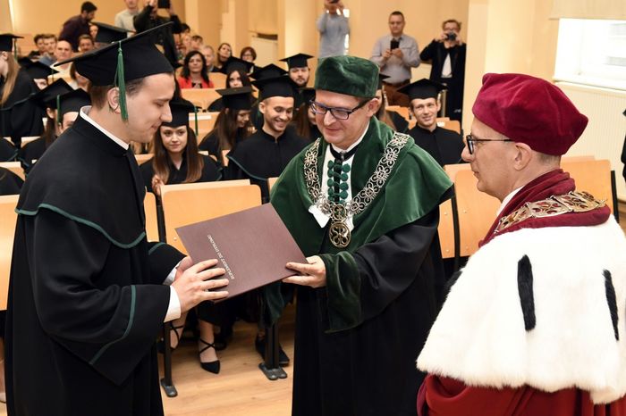 Uroczystości przewodniczył rektor Gruchała, który w swoim przemówieniu pogratulował wszystkim dyplomantom oraz życzył dalszych sukcesów na polu zawodowym, jak i osobistym. Absolwenci po złożeniu przyrzeczenia odebrali dyplomy z rąk prof. Marcina Gruchały oraz prof. Michała Markuszewskiego.