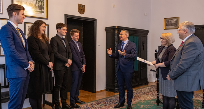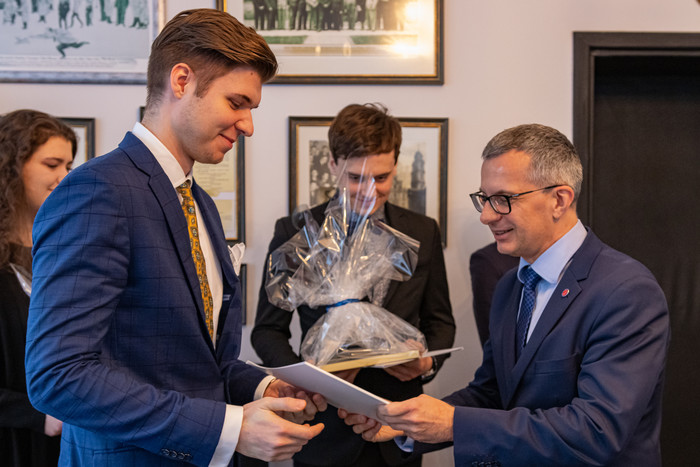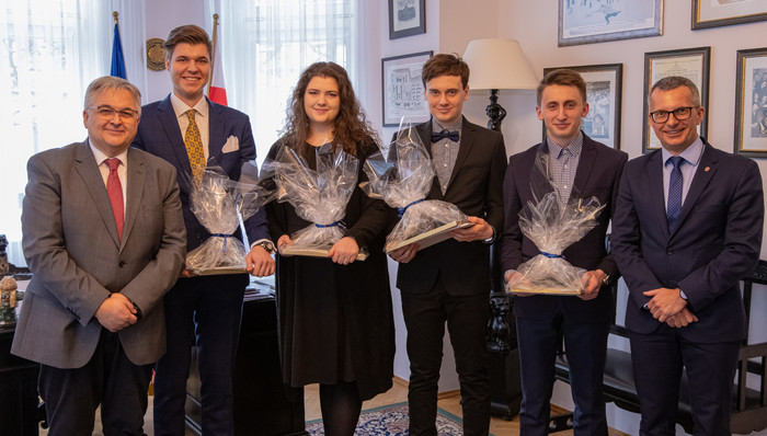 Nagrody wręczył 14 stycznia br. rektor prof. Marcin Gruchała wraz z prorektorem ds. studenckich dr. hab. Tomaszem Smiataczem.