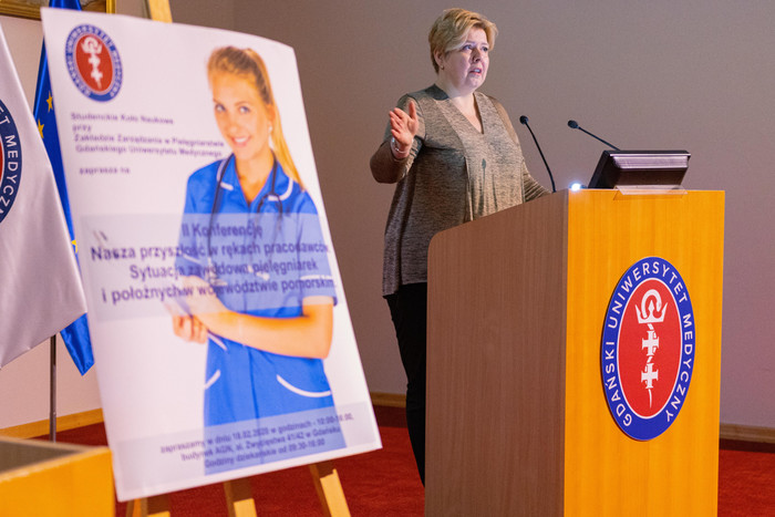 II Konferencja „Nasza przyszłość w rękach pracodawców – sytuacja zawodowa pielęgniarek i położnych w województwie pomorskim” zorganizowana przez Zakład Zarządzania w Pielęgniarstwie oraz Studenckie Koło Naukowe przy Zakładzie Zarządzania w Pielęgniarstwie odbyła się 18 lutego br. w Auditorium Primum im. prof. Olgierda Narkiewicza. Wydarzenie patronatem honorowym objął rektor Gdańskiego Uniwersytetu Medycznego prof. Marcin Gruchała oraz Okręgowa Izba Pielęgniarek i Położnych w Gdańsku. Konferencję otworzył prof. Jacek Bigda – prorektor ds. rozwoju i organizacji kształcenia.