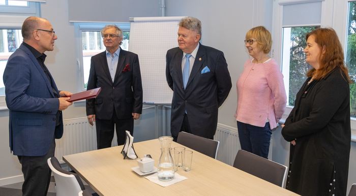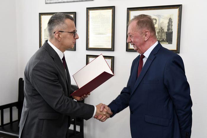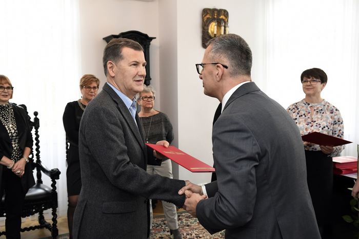 Rektor prof. Marcin Gruchała oraz prorektor ds. rozwoju i organizacji kształcenia, prof. Jacek Bigda spotkali się z pracownikami, którzy w 2019 roku przeszli na emeryturę.