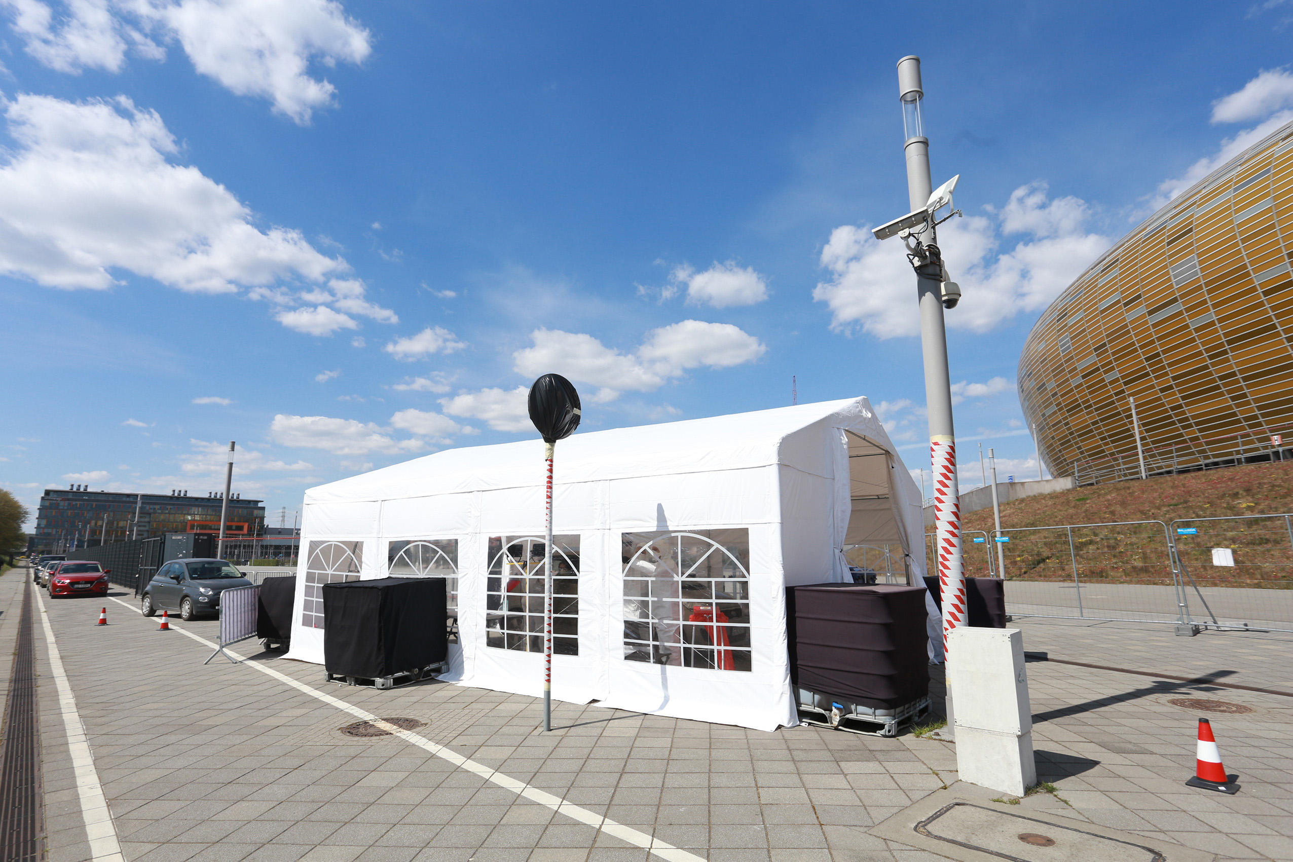 Namiot, w którym wykonywane są badania, stoi przy Stadionie Energa Gdańsk, przestrzeni udostępnionej przez Miasto Gdańsk.