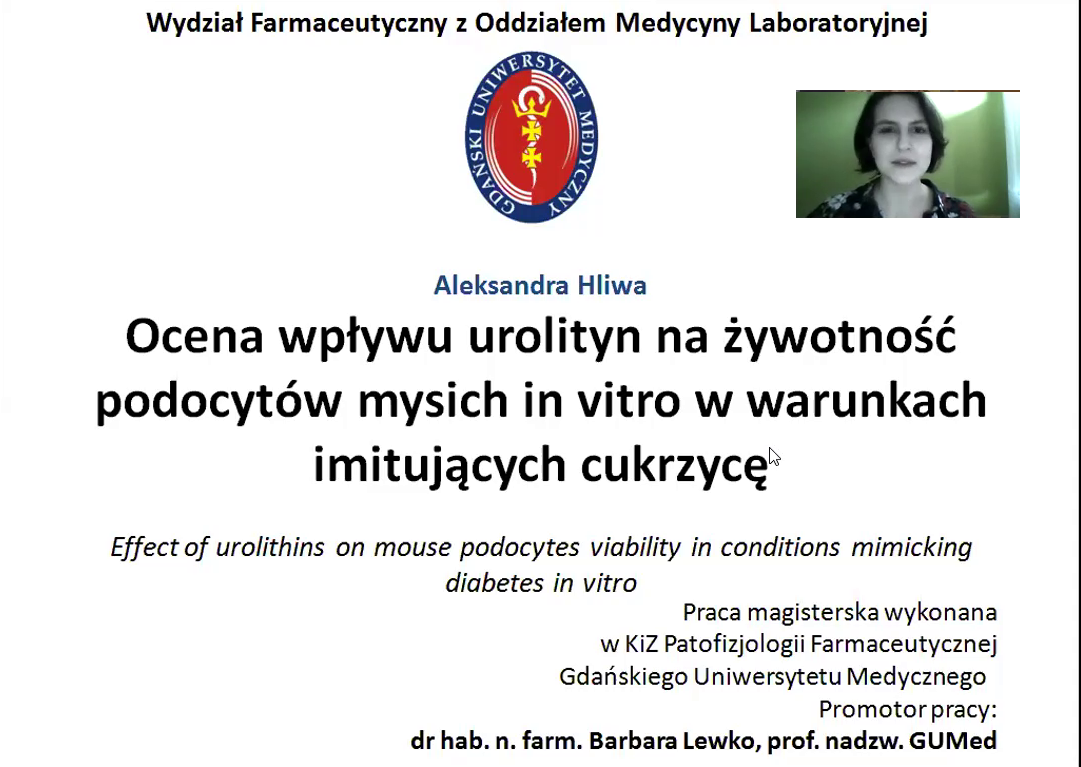 Marta Dawid wygrała tegoroczny Konkurs Prac Magisterskich wykonanych w roku akademickim 2018/2019 na kierunku farmacja. Komisja konkursowa doceniła jej pracę Charakteryzacja izolatów z hodowli Pectobacterium sp. z użyciem elektroforezy, której promotorem był dr hab. Bartosz Wielgomas, kierownik Katedry i Zakładu Toksykologii. Drugie miejsce zajęła Aleksandra Hliwa z pracą Ocena wpływu urolityn na żywotność podocytów mysich in vitro w warunkach imitujących cukrzycę wykonaną pod opieką dr hab. Barbary Lewko, prof. uczelni z Katedry i Zakładu Patofizjologii Farmaceutycznej. Studentce przyznano również nagrodę publiczności. Trzecie miejsce zdobył Marcin Joński, który przygotował pracę pt. Optymalizacja procesu wytwarzania metodą mokrej granulacji tabletek o niemodyfikowanym uwalnianiu. Jej promotorem była prof. dr hab. Małgorzata Sznitowska, kierownik Katedry i Zakładu Farmacji Stosowanej.