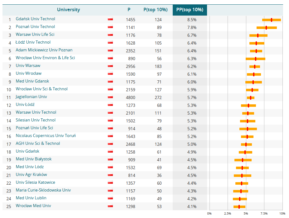 Ranking opiera się na wskaźnikach takich jak wpływ naukowy, współpraca międzynarodowa czy liczba publikacji prac naukowych napisanych przez kobiety na tle całkowitej liczby publikacji na uniwersytecie. Wyniki dostępne są zarówno dla wszystkich nauk, jak i dla poszczególnych dziedzin. Specyfika CWTS Leiden Ranking, która odróżnia go od innych międzynarodowych zestawień, polega na ukierunkowaniu wyłącznie na pomiar naukowej aktywności uczelni w oparciu o wskaźniki bibliometryczne publikacji indeksowanych w bazie Web of Science oraz współpracę w realizacji projektów badawczych.