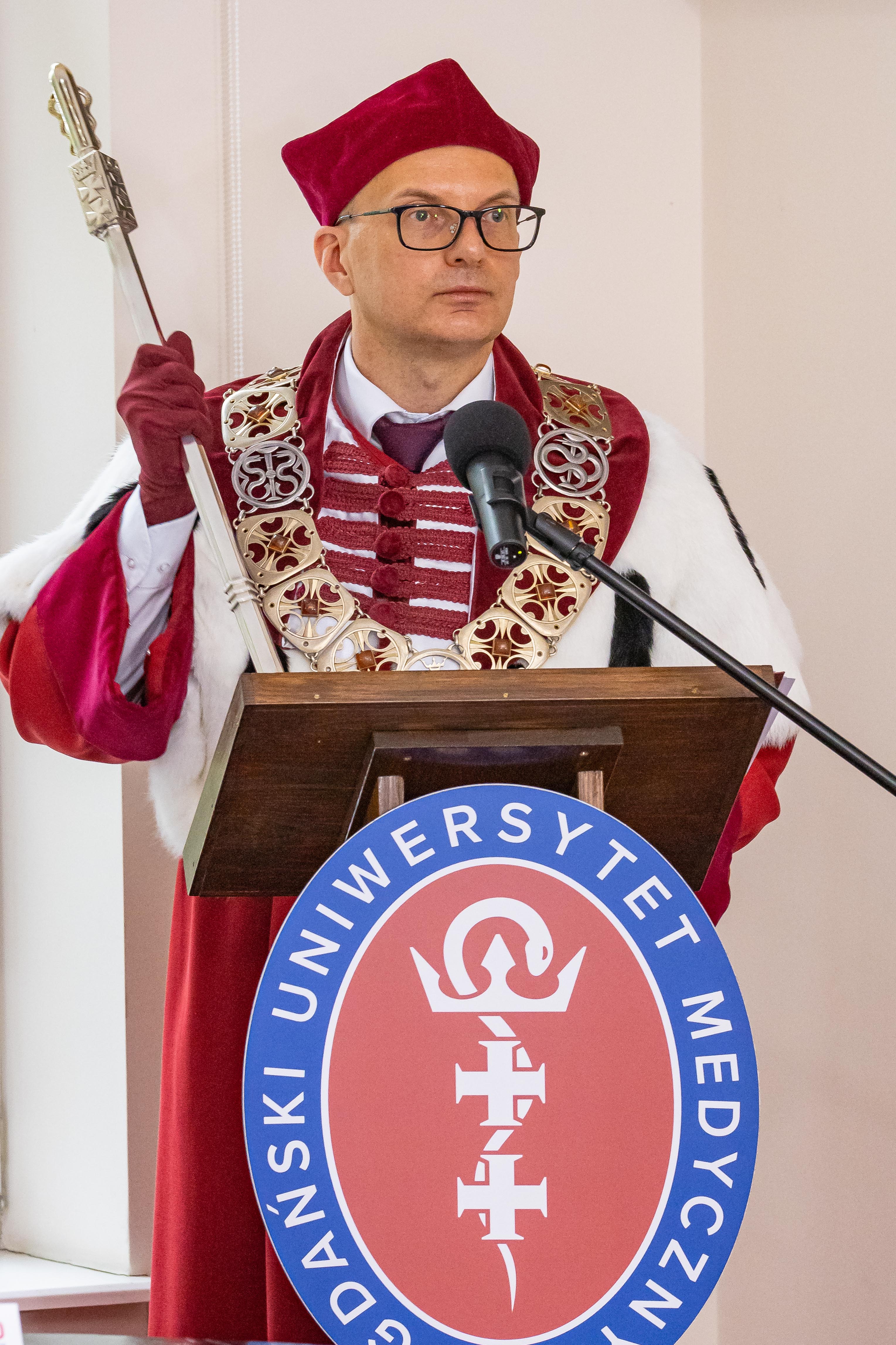 Uroczystość rozpoczęło tradycyjne przemówienie Rektora. W swoim wystąpieniu prof. Marcina Gruchały podkreślił, że GUMed jest jedną z wiodących uczelni publicznych w Polsce i najlepszą szkołą medyczną w kraju. Uniwersytetem, którego wysoki potencjał naukowy, badawczy i rozwojowy doceniło międzynarodowe grono ekspertów, plasując GUMed w prestiżowym gronie 10 uczelni badawczych.
