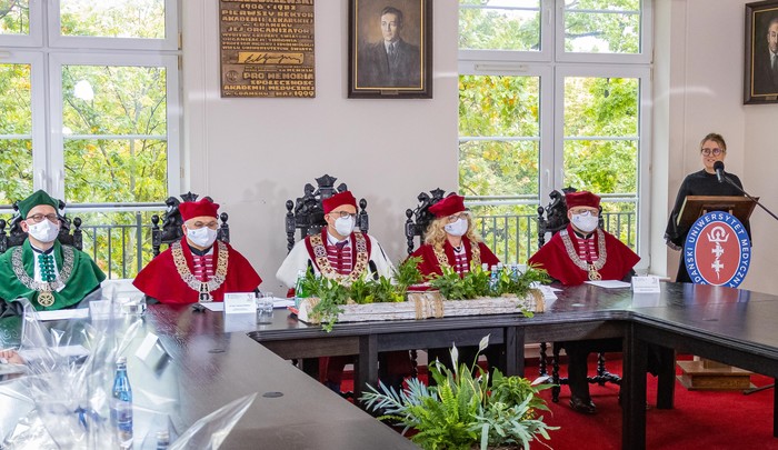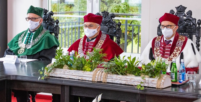 – Jako rektor jestem dumny ze świadectwa, jakie w ostatnich miesiącach dali nasi pracownicy, studenci i doktoranci w obliczu nieznanej i groźnej choroby. Dziękuję za to, że w tej wyjątkowej sytuacji wykazaliście się profesjonalną i dojrzałą postawą, stając na pierwszej linii walki z epidemią – podkreślił prof. Gruchała. – Swoim zaangażowaniem i bezinteresowną chęcią niesienia pomocy zdaliście najważniejszy egzamin z odpowiedzialności za drugiego człowieka, służenia zdrowiu i życiu ludzkiemu bez względu na okoliczności.