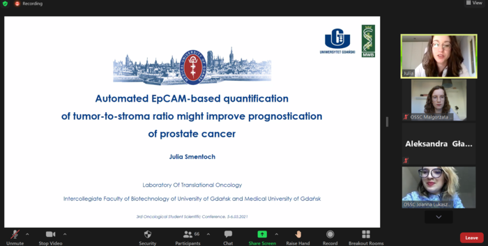 Dwa dni, ponad 100 uczestników z Polski i Europy, a także niepowtarzalna okazja do dyskusji w gronie studentów oraz młodych lekarzy zainteresowanych onkologią i pokrewnymi dziedzinami medycyny. 3rd Oncological Student Scientific Conference (OSSC) została zorganizowana w dniach 5-6 marca 2021 r. w formie online. W ramach wydarzenia odbyły się wykłady zaproszonych ekspertów, interaktywne warsztaty oraz konkursowe sesje prac studenckich. Konferencja miała charakter międzynarodowy, a wszystkie wydarzenia przebiegały w języku angielskim.