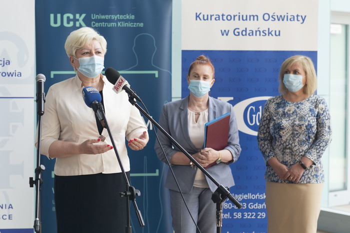 W wydarzeniu brała udział również Małgorzata Bielang, pomorska kurator oświaty, która podkreślała, jak ważne jest szczepienie młodzieży, tak aby można było rozpocząć nowy rok szkolny we wrześniu, w nauczaniu stacjonarnym.