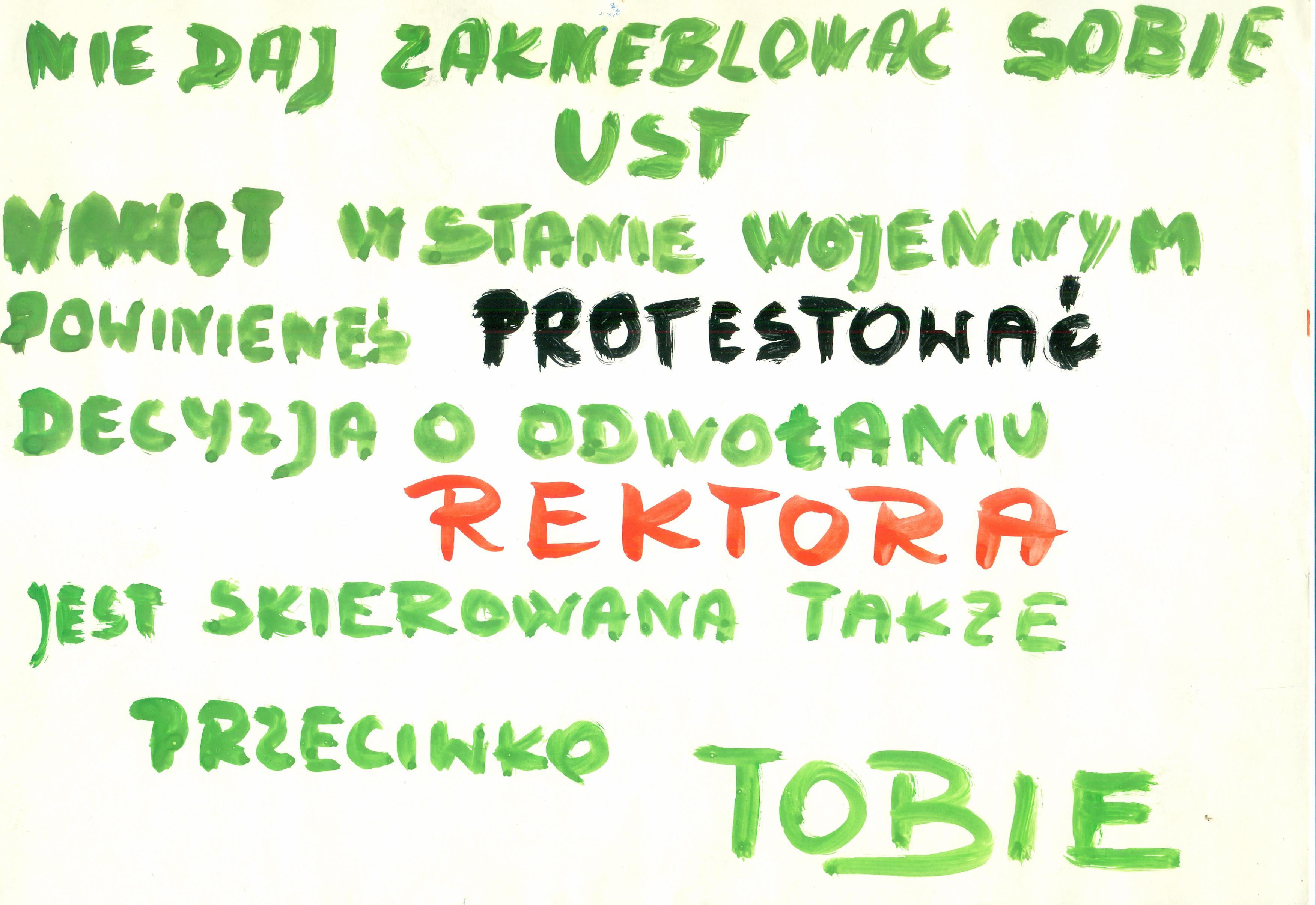 Decyzja Ministra spotkała się, co zrozumiałe, z bardzo krytyczną reakcją społeczności akademickiej. W zbiorach Muzeum GUMed znajdują się ręcznie malowane plakaty formatu A4 wyrażając sprzeciw przeciw odwołaniu rektora, domagające się przywrócenia go na dotąd zajmowane stanowisko, oraz wyrażające krytykę wobec ówczesnych władz rządowych. Plakaty zostały w czasach stanu wojennego starannie ukryte i dzięki temu przetrwały w doskonałym stanie. Było ich być może więcej, te które znalazły się w zbyt widocznych miejscach zostały zapewne usunięte, być może zniszczone, być może trafiły do archiwów milicji lub SB.