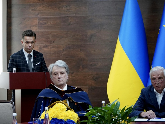 od lewej: Rostyslav Valikhnovski, Wiktor Juszczenko, prof. Miłosz Jaguszewski