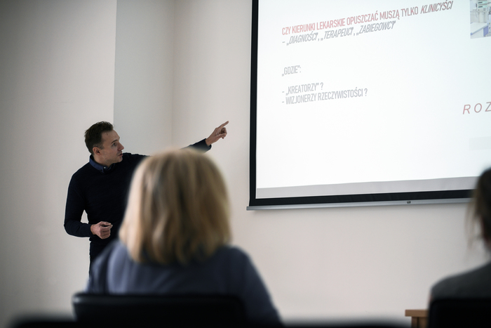Pierwsze spotkanie, którego gościem był prof. Bartosz Karaszewski, kierownik Katedry Neurologii i Kliniki Neurologii Dorosłych GUMed, poprowadziła dr Agnieszka Anielska, koordynatorka programu. Punktem wyjścia do dyskusji na temat specyfiki studiów medycznych, możliwych ścieżek rozwoju dla absolwentów kierunku lekarskiego, a także wyzwań, jakie stoją przed systemem edukacyjnym w Polsce, był wykład prof. Karaszewskiego zatytułowany Lekarz: klinicysta i naukowiec, analityk i humanista? Kolejne spotkania już w październiku.