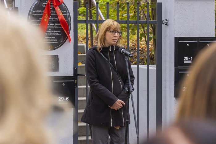 – Znam Panią Profesor z perspektywy sąsiedzkiej i wiem, że walczyła zarówno o Solidarność przez „S”, jak i o solidarność pisaną małą literą. Ta solidarność była w domu przy ul. Tuwima bardzo żywa, a sąsiedzi mogli zawsze liczyć na gościnność gospodarzy. Pani Profesor razem z mężem walczyła o człowieka i jego godne życie. Była gotowa pomóc wszystkim potrzebującym, którzy znaleźli się w trudnej sytuacji życiowej, nie patrząc na barwy polityczne. Mam nadzieję, że ta tablica będzie inspirowała mieszkańców dzielnicy i przechodniów właśnie do tego typu solidarności – mówiła radna Anna Golędzinowska, inicjatorka stworzenia tablicy.