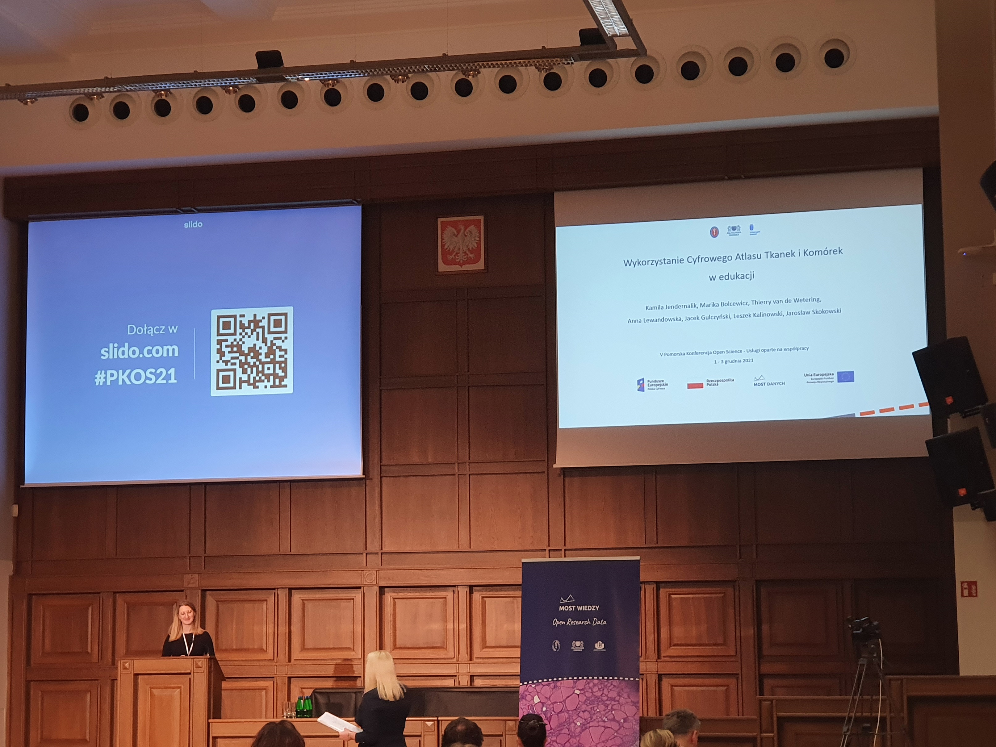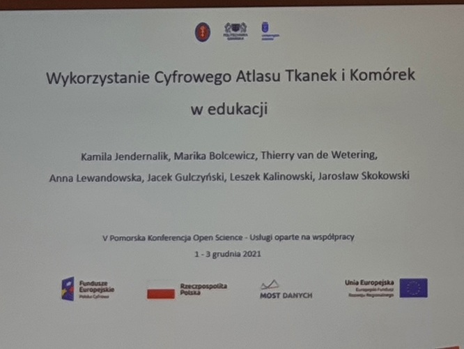 Niemal 100 uczestników w najbardziej aktywnym momencie brało udział w 5 edycji Pomorskiej Konferencji Open Science 2021 (PKOS 2021), która odbyła się w dniach 1-3 grudnia 2021 r. na Politechnice Gdańskiej z którą Gdański Uniwersytet Medyczny oraz Uniwersytet Gdański tworzą Związek Uczelni w Gdańsku im. Daniela Fahrenheita. Wydarzenie organizowane przez Bibliotekę PG zostało objęte patronatem rektora GUMed prof. Marcina Gruchały. Z ramienia naszej Uczelni w konferencji wzięła udział mgr Kamila Jendernalik z Zakładu Medycznej Diagnostyki Laboratoryjnej z wystąpieniem pt. Wykorzystanie Cyfrowego Atlasu Tkanek i Komórek w edukacji przygotowanym wspólnie z reprezentującymi Zakład prof. Leszkiem Kalinowskim (kierownikiem jednostki), dr. Jarosławem Skokowskim, dr. Thierrym van de Weteringiem, lek. Anną Lewandowską i mgr Mariką Bolcewicz, a także z dr. Jackiem Gulczyńskim z Zakładu Patologii i Neuropatologii. Dr Jarosław Skokowski był również członkiem komitetu naukowego wydarzenia.