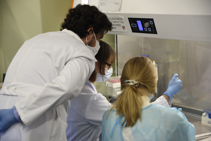 Podczas ostatniej wizyty w Gdańskim Uniwersytecie Medycznym uczestnicy gościli na Wydziale Farmaceutycznym, gdzie wzięli udział w zajęciach Hodowle ludzkich komórek jako model badań nad ludzkimi schorzeniami. Przeprowadził je zespół pod kierownictwem prof. Rafała Bartoszewskiego, w skład którego weszli naukowcy Katedry i Zakładu Biologii i Botaniki Farmaceutycznej oraz Katedry i Zakładu Chemii Nieorganicznej: dr hab. Sylwia Bartoszewska, mgr Magdalena Gebert, dr Maciej Jaśkiewicz, dr hab. Jarosław Króliczewski. Na uczniów czekała nie tylko sala wykładowa, ale i laboratorium przygotowane do przeprowadzenia eksperymentów. Po części wstępnej, podczas której prowadzący zapoznali uczestników z modelem badań nad ludzkimi schorzeniami opartym na hodowli komórek ludzkich oraz przybliżyli podstawy biologii niekodujących RNA i terapii RNAi, przyszedł czas na pracę z preparatami, probówkami i wirówkami. Pod czujnym okiem naukowców uczniowie samodzielnie przeprowadzili izolację i analizę miRNA korzystając z infrastruktury wydziałowych laboratoriów. Podsumowaniem spotkania była dyskusja na temat możliwości, ale i poważnych zagrożeń, jakie wiążą się z zastosowaniem terapii genowej i RNAi, która po raz kolejny zwróciła uwagę przyszłych lekarzy i naukowców na szereg dylematów etycznych, jakie towarzyszą rozwojowi nauki i technologii. Więcej o badaniach realizowanych przez zespół pod kierownictwem prof. Rafała Bartoszewskiego można dowiedzieć się z materiału video.
