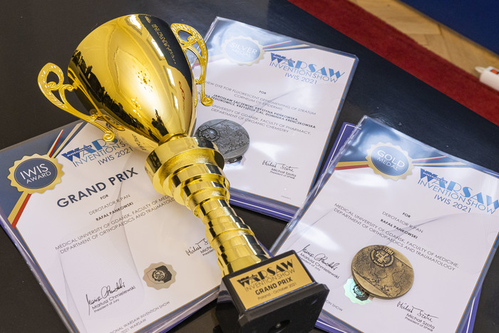 Naukowcy z Gdańskiego Uniwersytetu Medycznego: dr hab. Rafał Pankowski z Katedry i Kliniki Ortopedii i Traumatologii Narządu Ruchu oraz zespół w składzie: dr hab. Jarosław Sączewski z Katedry i Zakładu Chemii Organicznej, dr hab. Krystyna Pieńkowska z Katedry i Zakładu Chemii Fizycznej, prof. Krzysztof Cal z Katedry i Zakładu Farmacji Stosowanej, dr inż. Joanna Fedorowicz z Katedry i Zakładu Technologii Chemicznej Środków Leczniczych oraz mgr Dominika Krenczkowska, doktorantka z Katedry i Zakładu Chemii Fizycznej zostali laureatami nagród International Warsaw Invention Show za innowacyjne wynalazki.