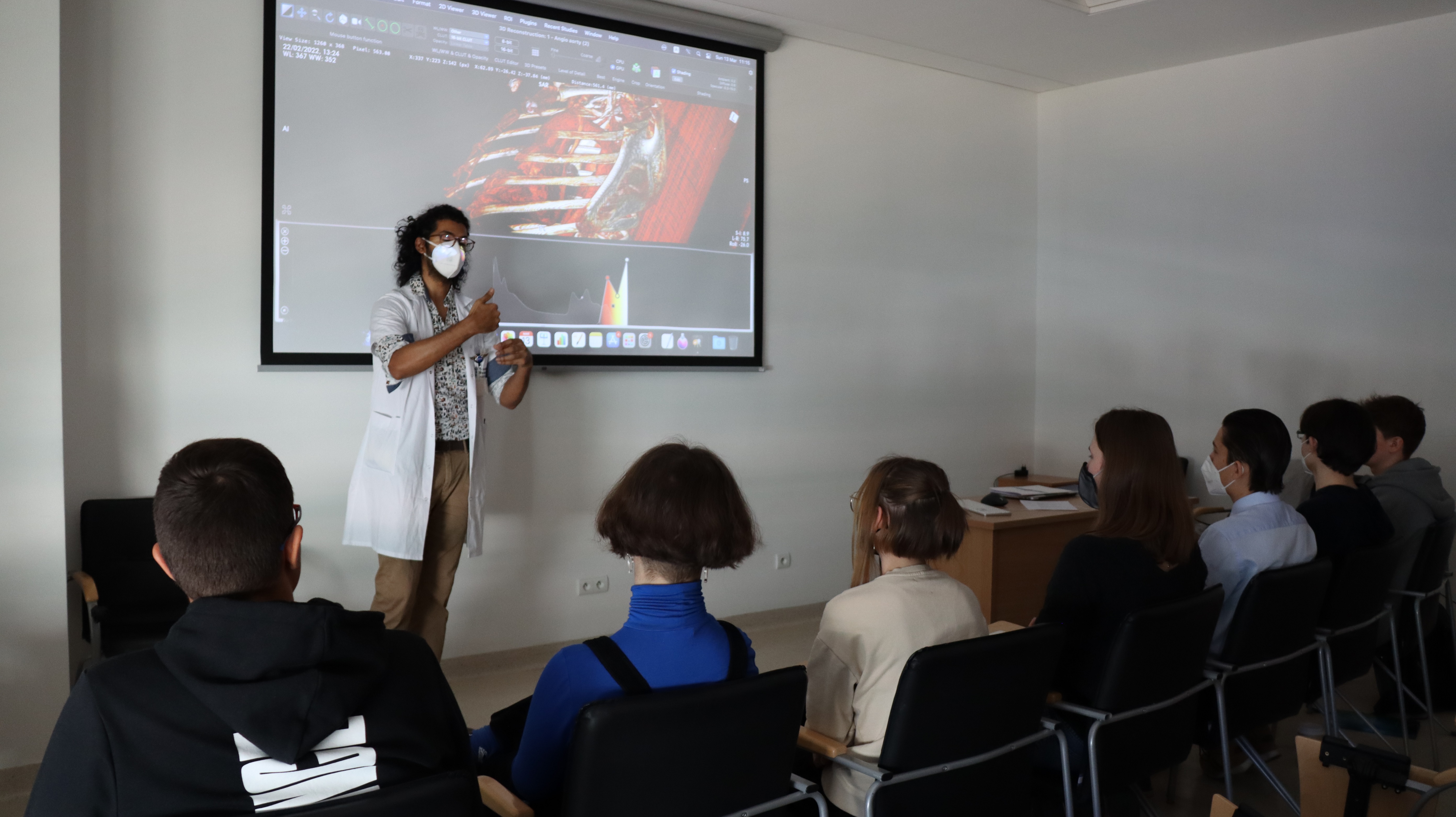 Dr Agnieszka Jankowska z tej samej jednostki rozpoczęła spotkanie od przybliżenia uczniom wyzwań, z jakimi mierzą się pediatrzy w przypadku różnego rodzaju zaburzeń i schorzeń, które uniemożliwiają dzieciom (czasowo lub stale) konwencjonalne żywienie. Następnie zaprezentowała możliwości, jakimi dysponuje współczesna medycyna, które umożliwiają pacjentom żywionym np. dojelitowo lub dożylnie funkcjonowanie w warunkach domowych. Uczestnicy na własne oczy mogli zobaczyć sprzęt używany przez lekarzy i rodziców w leczeniu żywieniowym i zapoznać się z zasadami jego funkcjonowania. Z kolei dr Matylda Hennig z Katedry i Kliniki Diabetologii i Endokrynologii Dziecięcej opowiedziała o tym, jak na przestrzeni lat zmieniał się proces leczenia cukrzycy typu I. Pierwszego dnia nie zabrakło również wątków naukowych – dr hab. Michał Brzeziński zapoznał uczniów z pojęciem Evidence Based Medicine i zasadami naukowej weryfikacji wiedzy.