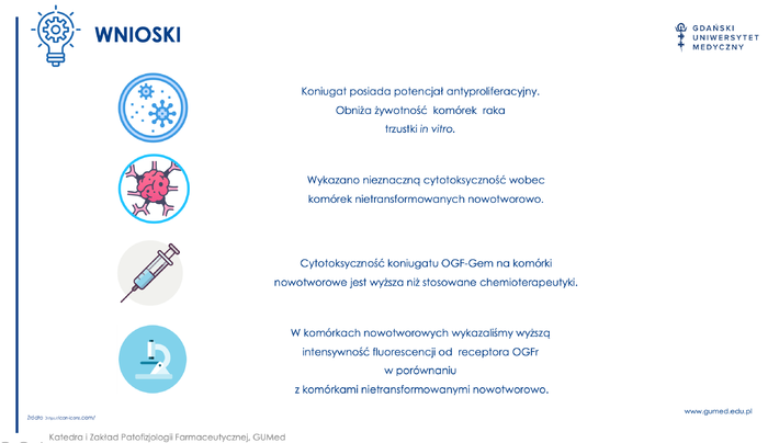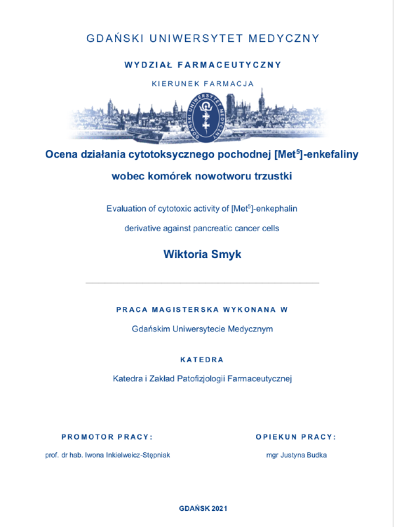 Tegoroczną edycję wygrała Wiktoria Smyk. Zwycięska praca pt. Ocena działania cytotoksycznego pochodnej [Met5]-enkefaliny wobec komórek nowotworowych trzustki powstała w Katedrze i Zakładzie Patofizjologii Farmaceutycznej pod kierownictwem prof. Iwony Inkielewicz-Stępniak.