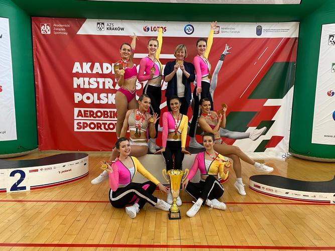 Reprezentacja Gdańskiego Uniwersytetu Medycznego w aerobiku sportowym, aktualni akademiccy mistrzowie Pomorza po raz kolejny pokazała wysoki poziom sportowy i obroniła wywalczony w ubiegłym roku tytuł akademickiego mistrza Polski. Zawody rozegrano w dniach 22-24 kwietnia 2022 r. w Krakowie z udziałem ponad 100 uczestników reprezentujących 17 uczelni z całego kraju.