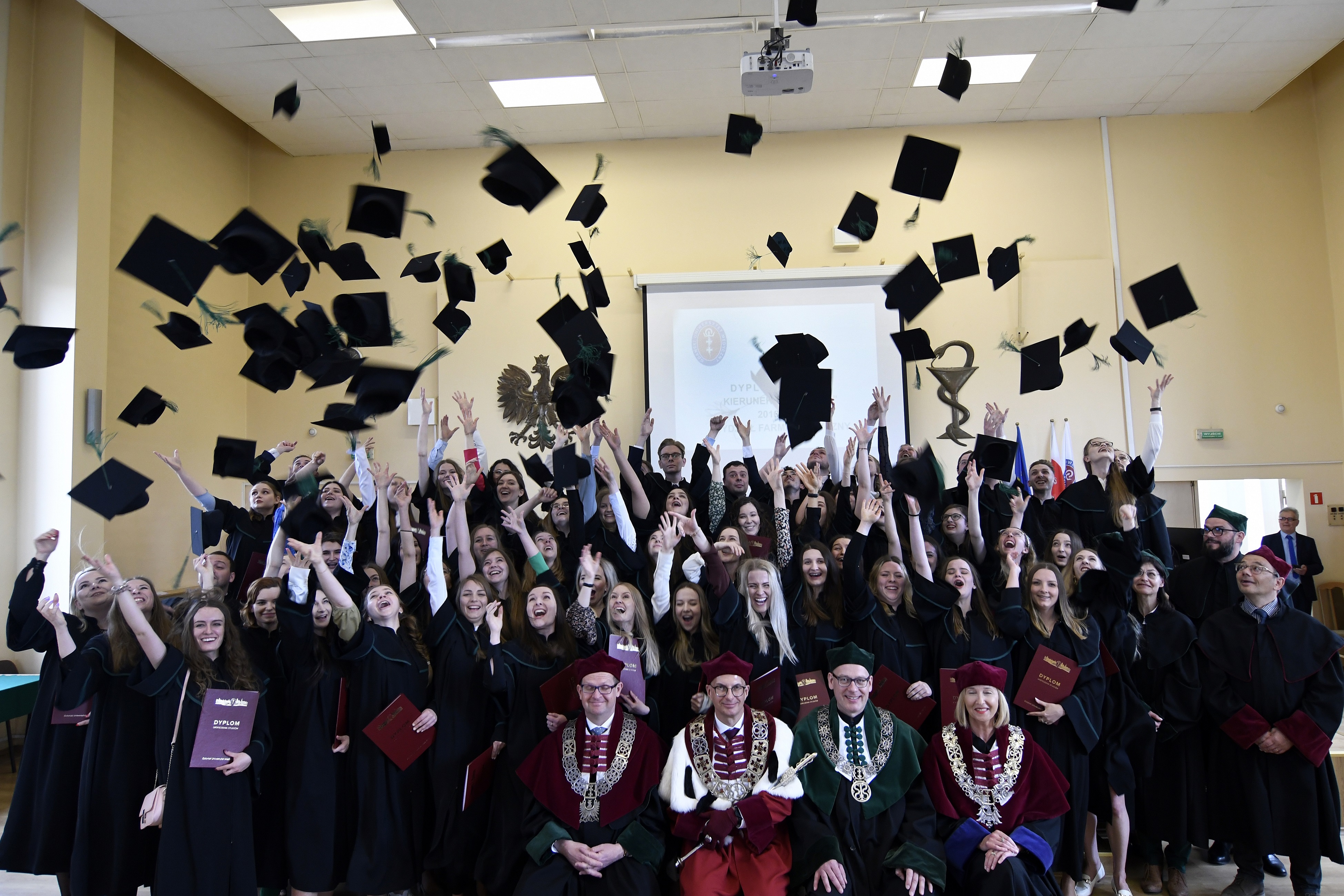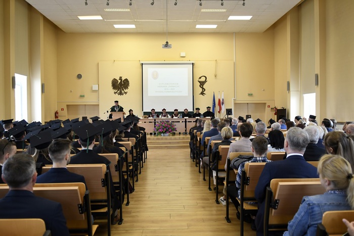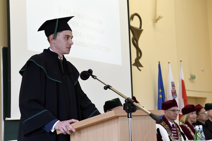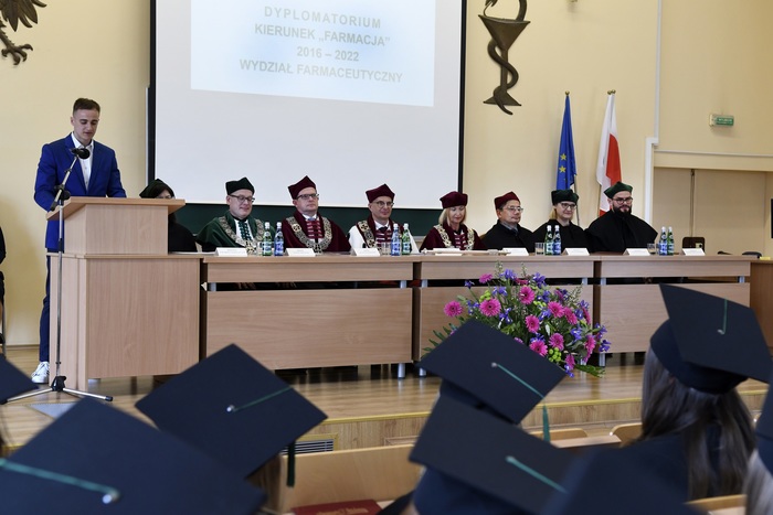 Osiemdziesięciu czterech absolwentów kierunku farmacja rocznika 2016-2022 odebrało swoje dyplomy. Dyplomatorium odbyło się 13 maja 2022 r. w Auditorium Maximum Wydziału Farmaceutycznego. W uroczystości, której przewodniczył dziekan WF prof. Wojciech Kamysz, udział wzięli: rektor GUMed prof. Marcin Gruchała, prorektor ds. nauki prof. Michał Markuszewski, prorektor ds. jakości kształcenia dr hab. Agnieszka Zimmermann, prof. uczelni, prodziekan Wydziału Lekarskiego prof. Paweł Zagożdżon, prodziekani Wydziału Farmaceutycznego: dr hab. Magdalena Prokopowicz, prof. uczelni, dr hab. Danuta Siluk, prof. uczelni, dr hab. Bartosz Wielgomas, prof. uczelni, członkowie Rady Wydziału Farmaceutycznego, członkowie Rady Pracodawców, zaproszeni goście oraz rodziny absolwentów. Dyplomatorium poprowadziła dr Joanna Śliwińska, rzecznik prasowa Uczelni.