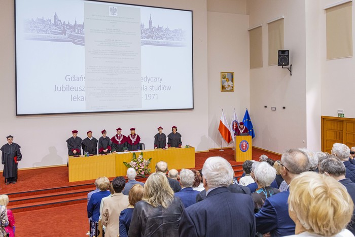 Siedemdziesięcioro czworo lekarzy, absolwentów Wydziału Lekarskiego rocznika 1965-1971 obchodziło 27 maja 2022 r. jubileusz 50-lecia odnowienia dyplomów. W Atheneum Gedanense Novum przemówienia wygłosili: dr hab. Agnieszka Zimmermann, prof. uczelni, prorektor ds. jakości kształcenia oraz dziekan Wydziału Lekarskiego prof. Radosław Owczuk, który odczytał także treść dyplomu w języku łacińskim. W uroczystości wzięli również udział: prof. Michał Markuszewski, prorektor ds. nauki, a także prodziekani Wydziału Lekarskiego – prof. Ewa Słomińska, dr hab. Maria Bieniaszewska, prof. Aida Kusiak, prof. Paweł Zagożdżon i dr hab. Kamil Chwojnicki.