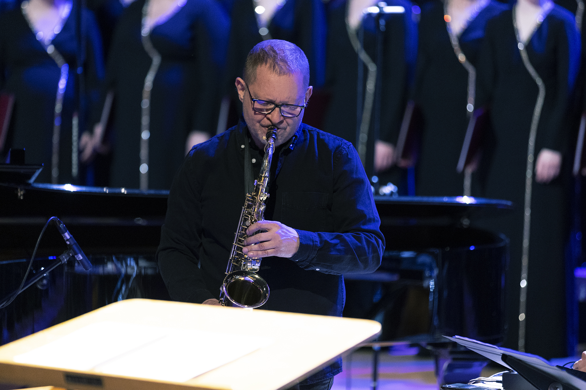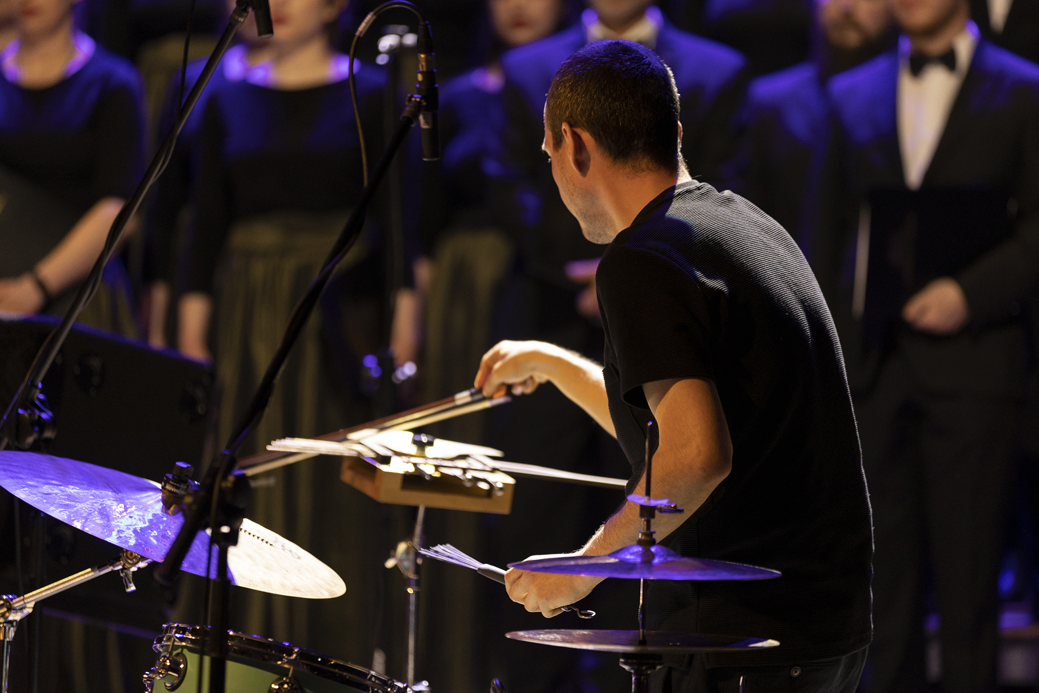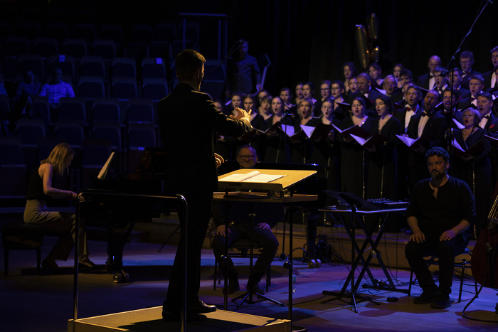 Na scenie Chór GUMed pod dyrekcją Błażeja Połoma wystąpił w niecodziennej oprawie – towarzyszył im Chór Akademicki Uniwersytetu Gdańskiego, a w drugiej części koncertu również trio jazzowe w składzie: Mikołaj Trzaska – saksofon, Olo Walicki – kontrabas i Jacek Prościński – instrumenty perkusyjne. Akompaniowała im na fortepianie Anna Rocławska-Musiałczyk, która specjalnie na tę uroczystość napisała muzykę do wiersza Tam i tu, którego autorem jest Bogdan Jaremin, profesor Gdańskiego Uniwersytetu Medycznego.