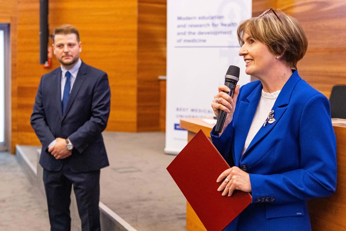 Oprócz Rektora GUMed okolicznościowe przemówienie wygłosili także: prodziekan prof. Ewa Słomińska, która odczytał list gratulacyjny dziekana Wydziału Lekarskiego prof. Radosława Owczuka oraz dyrektor UCK Jakub Kraszewski. Reprezentująca samorząd województwa Hanna Zych-Cisoń, w imieniu marszałka Mieczysława Struka, wręczyła prof. Marii Dudziak medal De nihilo nihil fit, a na ręce prof. Marcina Hellmanna złożyła pamiątkową grafikę dla całego zespołu.