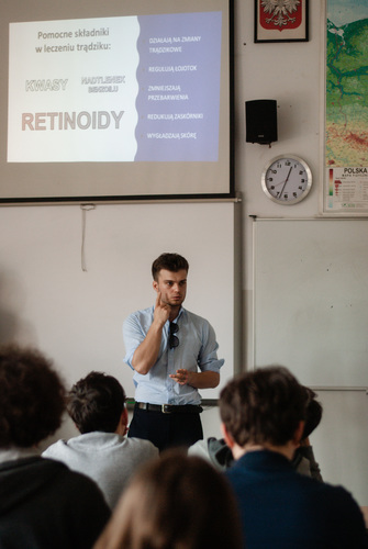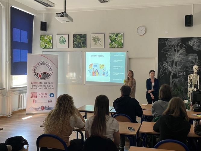 Członkowie Dermatologicznego Studenckiego Koła Naukowego działającego przy Katedrze i Klinice Dermatologii, Wenerologii i Alergologii GUMed pod nadzorem opiekun Koła i promotor akcji dr hab. Magdaleny Trzeciak, prof. uczelni, zorganizowali w okresie kwiecień – czerwiec 2022 r. spotkania edukacyjne dla uczniów klas licealnych 4 trójmiejskich szkół średnich. Cykl wykładów pod hasłem Trądzik? Też to znam! prowadzili studenci kierunku lekarskiego GUMed: koordynator wydarzenia Urszula Kobus (VI r.), Karol Kołkowski (V r.), Beata Zagórska (IV r.), Alicja Mesjasz (IV r.), Weronika Zysk (V r.), Izabela Skórka (V r.), Agata Jarosz (IV r.), Natalia Domańska (III r.), Marta Urbaniak (III r.) oraz Anna Kloczkowska (IV r.).