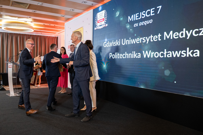 Po raz kolejny nasza Uczelnia znalazła się w gronie wiodących polskich ośrodków akademickich. Zgodnie z wynikami 23 edycji Rankingu Uczelni Akademickich Fundacji Edukacyjnej Perspektywy Gdański Uniwersytet Medyczny zajmuje wysokie 7 miejsce wśród wszystkich uczelni w kraju, poprawiając swoją pozycję o jedną lokatę. Jest też najwyżej ocenioną uczelnią medyczną. Równie dobrze wypada GUMed w tegorocznym rankingu kierunków studiów, zajmując odpowiednio 2 pozycję na kierunku lekarskim i farmacji, 4 – położnictwie oraz 5 – na kierunku lekarsko-dentystycznym, pielęgniarstwie i zdrowiu publicznym. Biotechnologia prowadzona na Międzyuczelnianym Wydziale UG i GUMed zajęła 3 miejsce w rankingu kierunków. Nasz Uniwersytet poprawił lub utrzymał swoją lokatę w 5 spośród 7 kryteriów rankingowych w porównaniu do ubiegłego roku, plasując się na 3 miejscu pod względem efektywności naukowej oraz 5 w kategorii potencjał naukowy. Uroczysta gala odbyła się 22 czerwca br. w Warszawie. W wydarzeniu udział wzięli: rektor prof. Marcin Gruchała oraz prof. Michał Markuszewski, prorektor ds. nauki. Swoją obecnością zaszczycił również Wojciech Murdzek, sekretarz stanu w Ministerstwie Edukacji i Nauki.