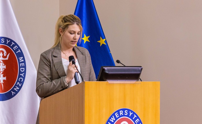 W ostatniej części wydarzenia uczestnicy mieli także okazję do zapoznania się z możliwościami nowo powstałych laboratoriów core facility. Kierownicy, koordynatorzy oraz członkowie zespołów badawczych przedstawili oferty poszczególnych jednostek. Jako pierwsza wystąpiła dr Marta Tomczyk kierująca Międzywydziałowym Laboratorium Badań in vivo. Z uwagi na interdyscyplinarny charakter jednostki współpraca z Laboratorium Badań in vivo umożliwia zaplanowanie, wykonanie specjalistycznych badań in vivo oraz analiz z różnych dziedzin medycyny doświadczalnej podczas jednego projektu badawczego lub badania przedklinicznego. O pracach z użyciem technik biologii molekularnej i zaawansowanych metod analitycznych w materiale klinicznym opowiedzieli dr hab. Tomasz Śledziński, prof. uczelni wraz z mgr Alicją Sztendel z Laboratorium Badań Zaburzeń Metabolicznych. Ofertę Laboratorium Analiz Metabolomicznych przedstawiła dr Wiktoria Struck-Lewicka, która w swojej prezentacji skupiła się na analizach biomedycznych. Trzeci blok wydarzenia zakończyła prelekcja mgr Natalii Frankowskiej, która omówiła ofertę i możliwości Środowiskowej Pracowni Obrazowania Patologii Struktury i Czynności Komórki.