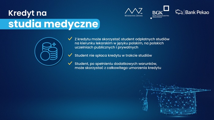Ministerstwo Zdrowia uruchomiło Fundusz Kredytowania Studiów Medycznych. Jego celem jest wsparcie studentów kształcących się w polskich uczelniach na płatnych niestacjonarnych polskojęzycznych kierunkach lekarskich poprzez sfinansowanie ich nauki.