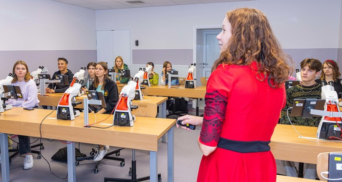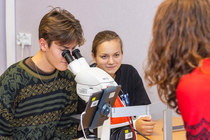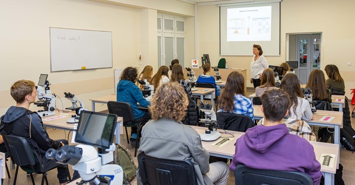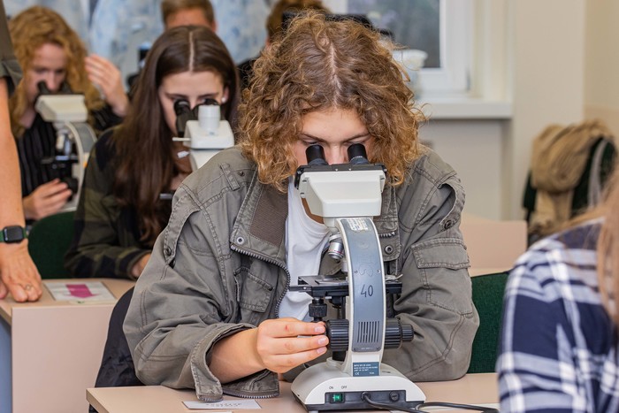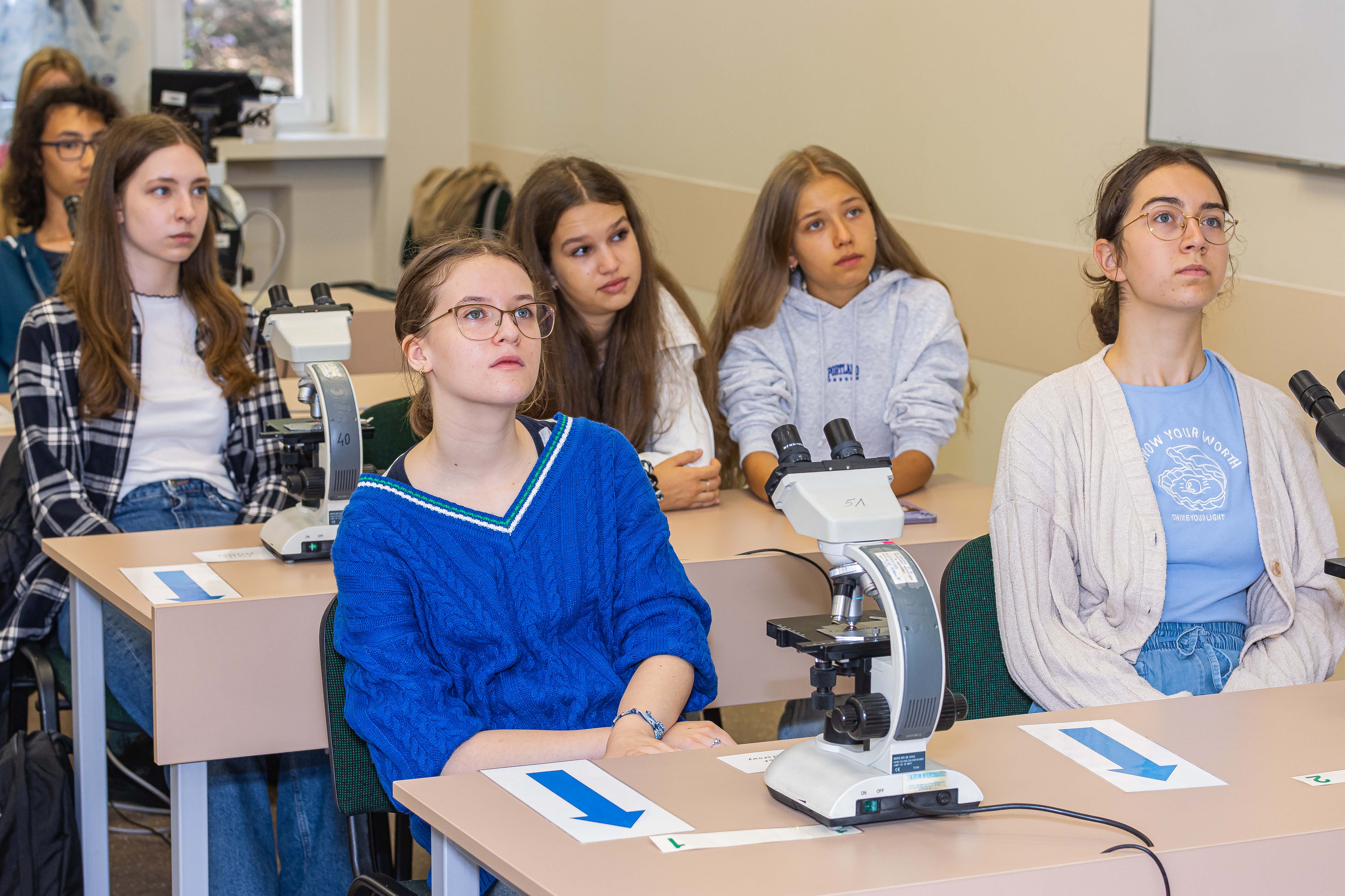 Uczniowie z dużym zaangażowaniem zgłębiali wiedzę dotyczącą budowy i funkcji tkanek. Wrześniowe warsztaty były kolejnym tego rodzaju wydarzeniem w bieżącym roku, po czerwcowym spotkaniu w Katedrze Histologii poświęconym m.in. badaniom ekotoksykologicznym. Relacja z tego spotkania dostępna jest na naszej stronie internetowej. Mamy nadzieję, że udało się rozbudzić ciekawość młodych gości i część z nich już wkrótce wróci do GUMed w charakterze studentów.