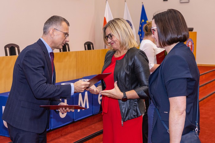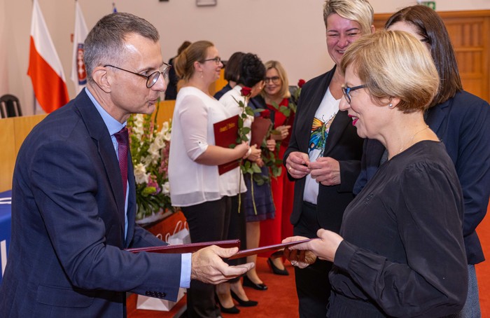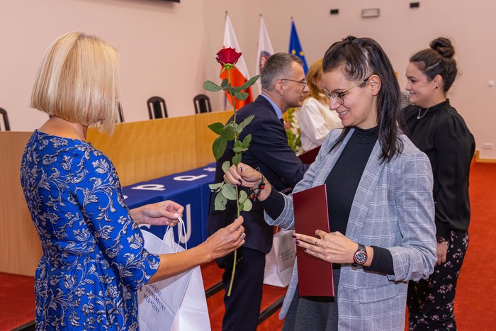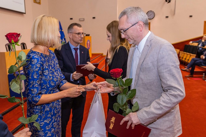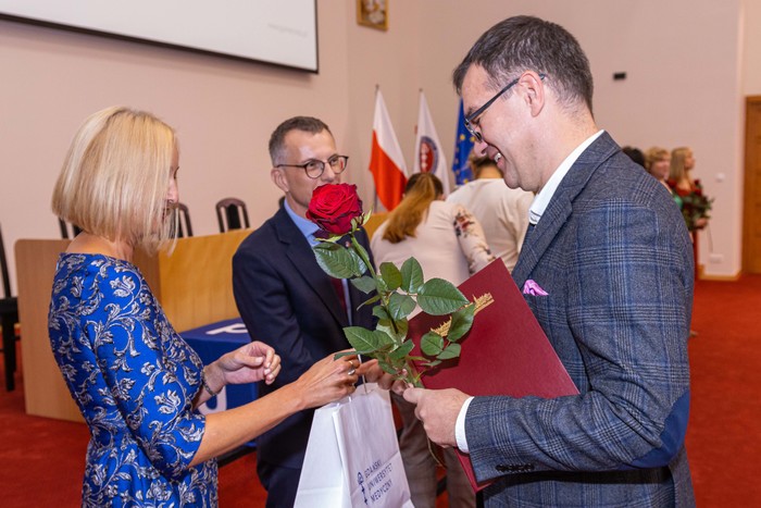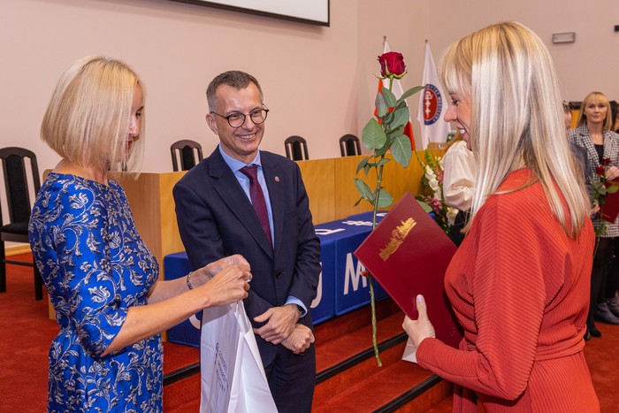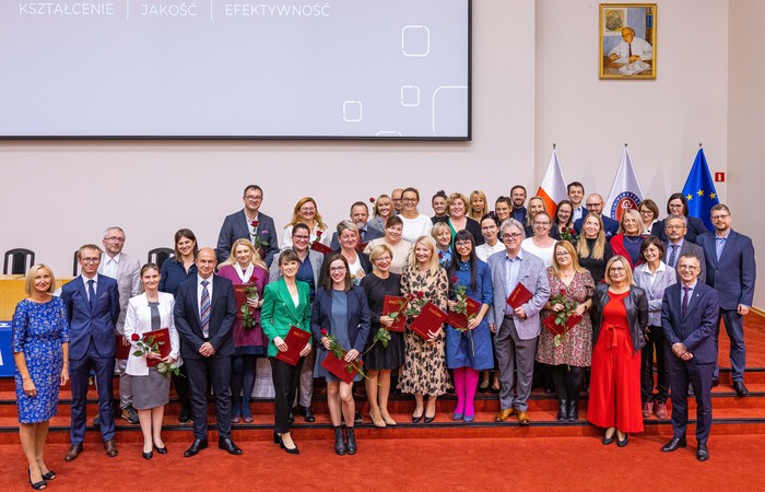 – Rocznie otrzymujemy około 30 tysięcy odpowiedzi studentów i doktorantów na ankiety dydaktyczne. Od 2018 roku obserwujemy znaczący wzrost nie tylko w zakresie ich liczby, ale również oceny pracy naszych nauczycieli. W 2021 roku aż 90 procent opinii było jednoznacznie pozytywnych, co potwierdza, że studenci doceniają starania i pracę dydaktyczną – podkreślił prof. Jacek Bigda, prorektor ds. rozwoju i organizacji kształcenia. – Chcemy, aby nagradzanie działań projakościowych realizowanych w obszarze kształcenia i aktywizujących młode pokolenie stało się tradycją na naszym Uniwersytecie, tak uroczyście dziś zapoczątkowaną.