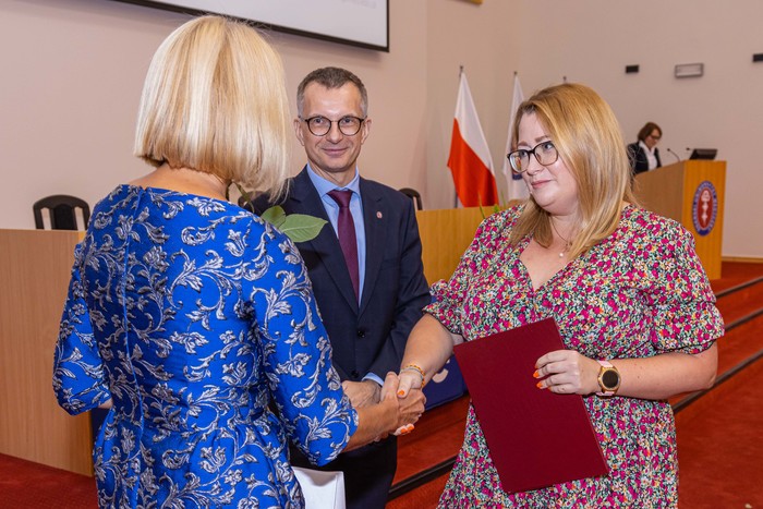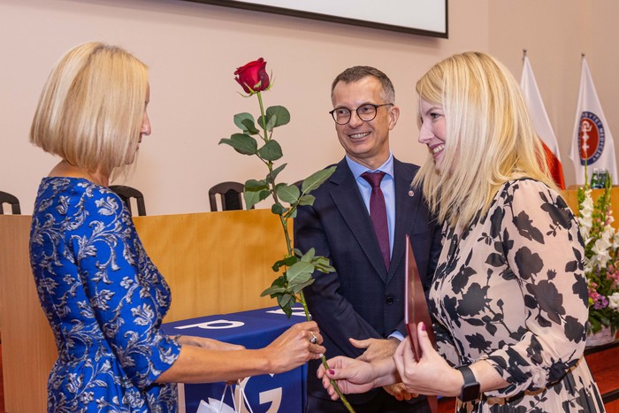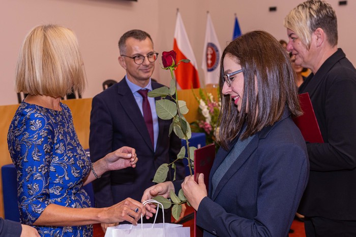 – Kształcenie młodych ludzi jest trudne, szczególnie w dzisiejszych czasach mnóstwo wyzwań stoi przed szkolnictwem, jak i naszą Uczelnią. Jest to praca satysfakcjonująca, ale i wymagająca, bowiem ucząc, oddajemy cząstkę siebie. Życzę Państwu przede wszystkim poczucia sensu i spełnienia – dodała prof. Agnieszka Zimmermann, prorektor ds. jakości kształcenia.
