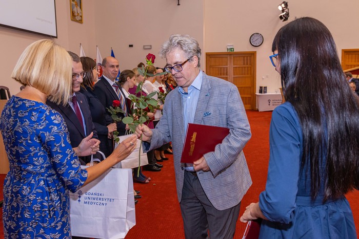 W uroczystości udział wzięli członkowie komisji konkursowej, którymi obok wspomnianych Prorektorów byli prodziekani Wydziałów GUMed – dr hab. Magdalena Błażek, prof. uczelni (WNoZ), dr hab. Magdalena Prokopowicz, prof. uczelni (WF) oraz prof. dr hab. Paweł Zagożdzon (WL). Obecni byli także przedstawiciele władz rektorskich i dziekańskich, w tym: prorektor ds. nauki prof. dr hab. Michał Markuszewski, prorektor ds. studenckich dr hab. Tomasz Smiatacz, dziekan Wydziału Nauk o Zdrowiu prof. dr hab. Przemysław Rutkowski oraz prodziekan WNoZ dr hab. Aleksandra Gaworska-Krzemińska, prof. uczelni.