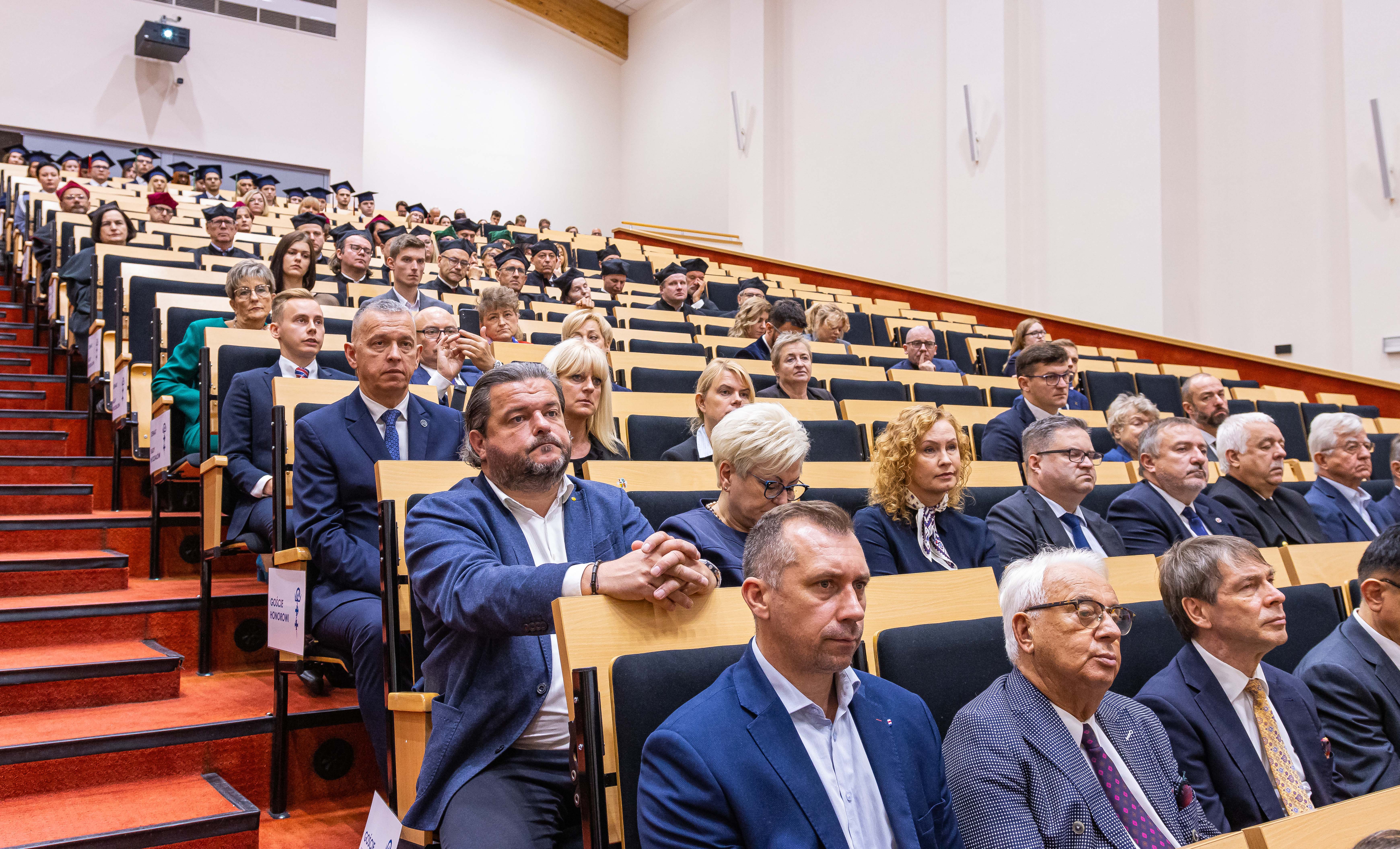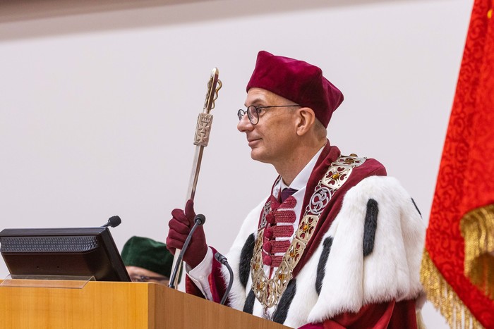 Uroczystość rozpoczęło przemówienie rektorskie, w którym prof. Marcin Gruchała duży nacisk położył na kwestie związane z akademicką dydaktyką, omawiając szanse, jakie w tym obszarze stwarza m.in. otrzymane finansowanie z MEiN na realizację projektu Doskonałość dydaktyczna Uczelni.