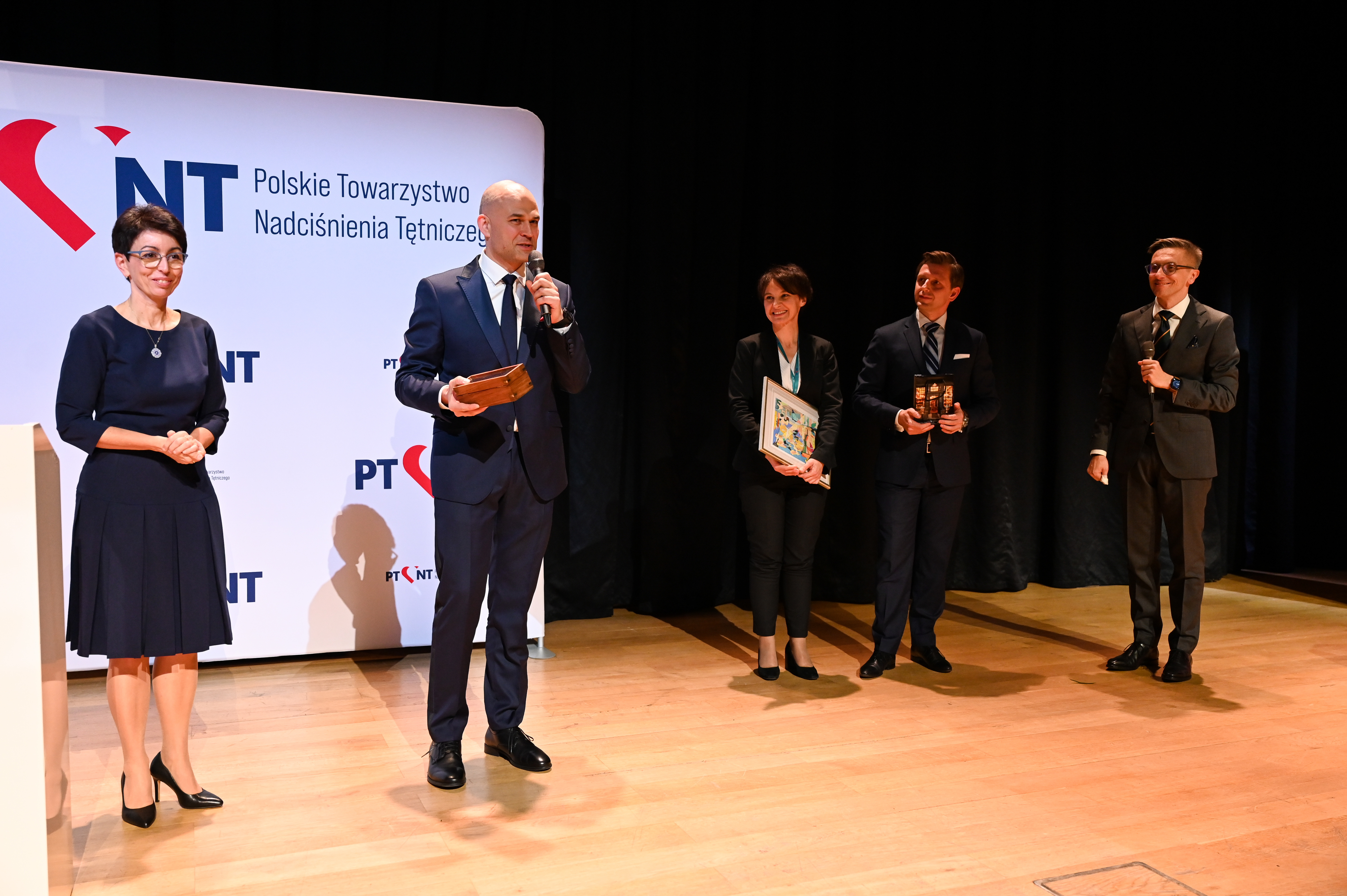 Podczas ceremonii otwarcia Zjazdu nagrody Polskiego Towarzystwa Nadciśnienia Tętniczego odebrali laureaci konkursu za wyróżniające się publikacje naukowe w latach 2020-2021. Za cykl publikacji pt. Analiza stosowania w praktyce klinicznej farmakologicznej blokady układu renina-angiotensyna-aldosteron u chorych po przeszczepieniu nerki oraz jej wpływ na ryzyko sercowo-naczyniowe i uszkodzenie graftu wyróżniono zespól z Katedry i Kliniki Nefrologii, Transplantologii i Chorób Wewnętrznych GUMed w składzie: dr Izabella Kuźmiuk-Glembin, dr hab. Zbigniew Heleniak, prof. dr hab. Leszek Tylicki oraz kierownik jednostki prof. dr hab. Alicja Dębska-Ślizień. W kategorii publikacji indywidualnych wyróżnienie za pracę pt. Masked hypertension in a 64-year old man with primary aldosteronism otrzymała dr Joanna Kanarek-Kucner z Zakładu Patologii i Reumatologii Doświadczalnej GUMed.
