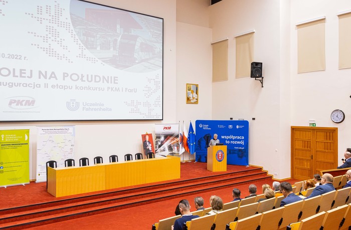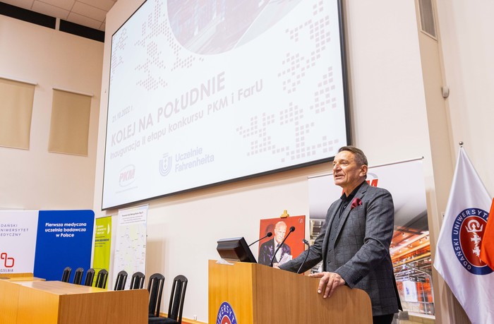 Oficjalnie zainaugurowano II etap konkursu Kolej na Południe, organizowanego wspólnie przez Uczelnie Fahrenheita (FarU) oraz Pomorską Kolej Metropolitalną (PKM). Uroczystość odbyła się 21 października br. w Auditorium Primum im. prof. Olgierda Narkiewicza w Atheneum Gedanense Novum. Koordynatorem uczelnianym projektu z ramienia GUMed jest dr inż. Maciej Tankiewicz z Zakładu Toksykologii Środowiska, który dodatkowo w ramach wydarzenia przygotował warsztaty dla uczestników konkursu.