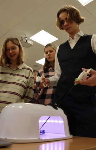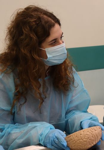 Przygodę z Gdańskim Uniwersytetem Medycznym uczestnicy rozpoczęli w pracowniach anatomicznych Zakładu Anatomii i Neurobiologii. Dr hab. Sławomir Wójcik przygotował dla nich zajęcia obejmujące zarówno pracę z klasycznymi preparatami, jak i nowoczesnymi narzędziami, takimi jak interaktywny stół anatomiczny. Uczniowie dowiedzieli się, w jaki sposób przygotowywane są preparaty, które następnie służą wielu pokoleniom studentów, a następnie, posiłkując się nimi, szczegółowo omówili budowę wybranych ludzkich narządów i ich funkcje.