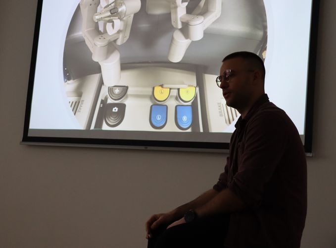 Następnie dr Piotr Spychalski z Kliniki Chirurgii Ogólnej, Endokrynologicznej i Transplantacyjnej przybliżył przyszłym studentom realia swojej codziennej pracy. Była to dla nich z jednej strony okazja to obalenia wielu mitów związanych z zawodem lekarza, z drugiej zaś możliwość zapoznania się z przypadkami klinicznymi z zakresu chirurgii i nowymi narzędziami, które znajdują zastosowanie w tej dziedzinie medycyny. Dr Spychalski przybliżył również uczestnikom swoje zainteresowania badawcze i opowiedział im o naukowym obszarze swojej działalności.